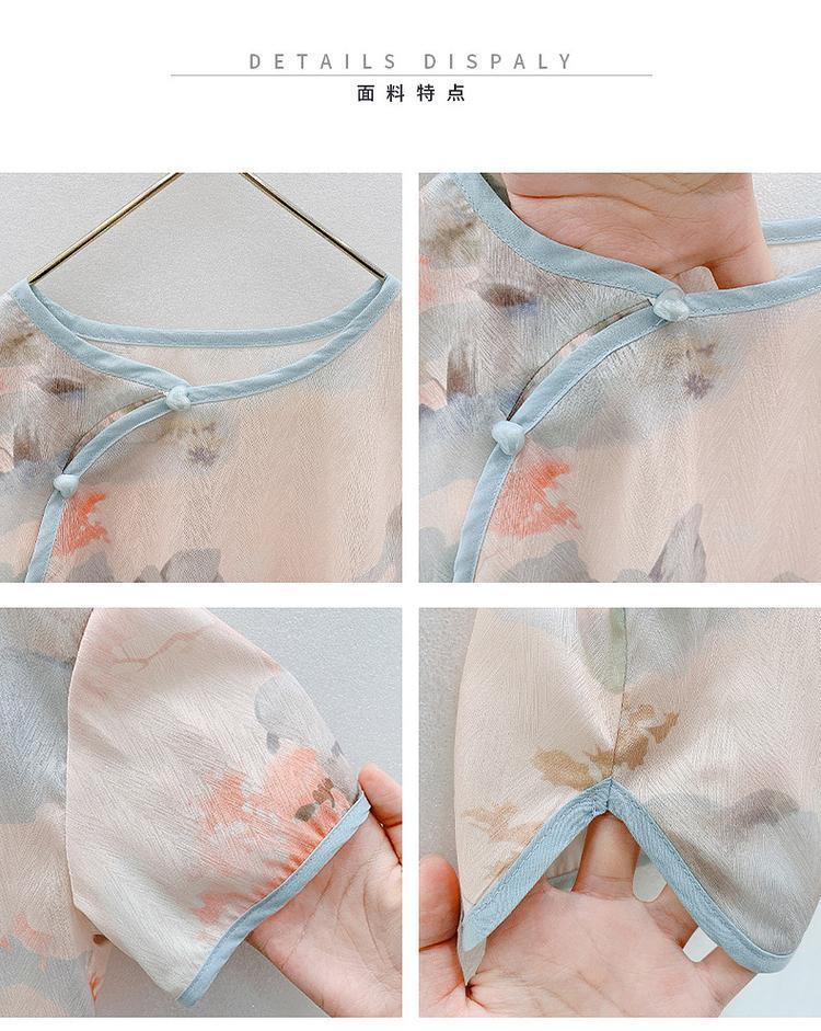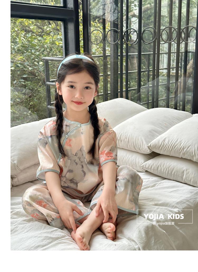 어린이 의류 소녀 국가 스타일 잠옷 세트 여름 한푸 새로운 중국 에어컨 의류 어린이 아이스 실크 홈 의류 여름 패션