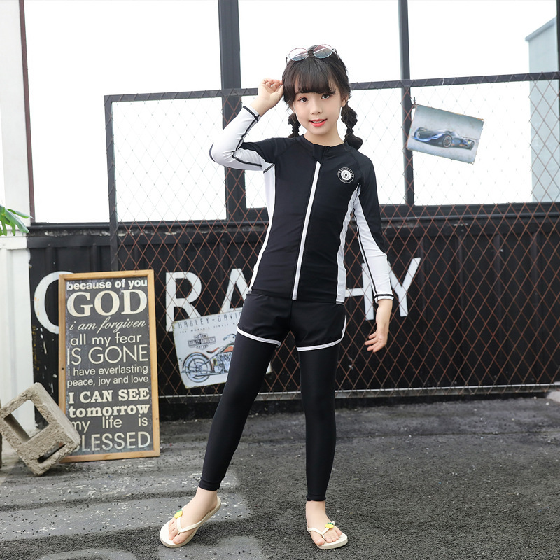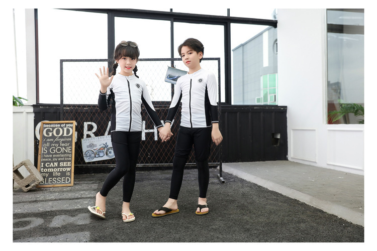 韩国拉链潜水服泳衣男女儿童全身分体防晒长袖长裤浮潜服温泉泳装