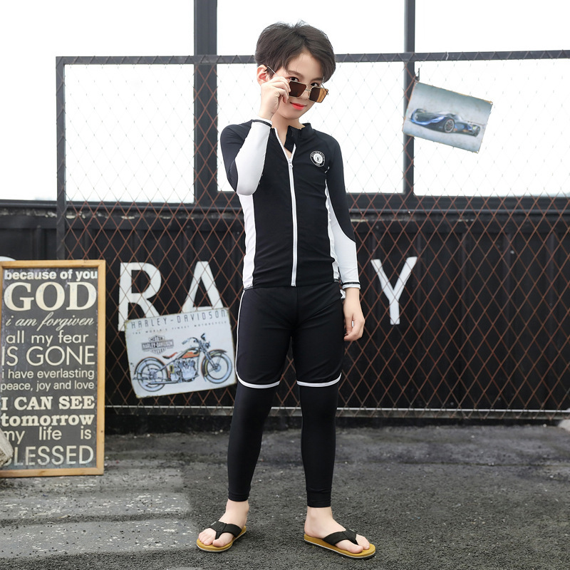 한국 지퍼 다이빙 세트 수영복 남성 및 여성 어린이 전신 분할 태양 방지 긴팔 바지 스쿠버 세트 온천 수영복