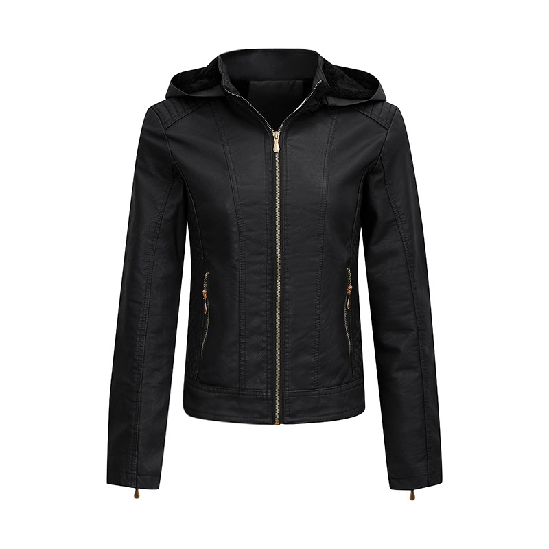 2024 아마존 플러스 사이즈 여성용 후드가 달린 벨벳 두꺼운 가죽 자켓, 여성용 슬림핏 PU 가죽 자켓, 여성용 가죽 자켓스토어 가기