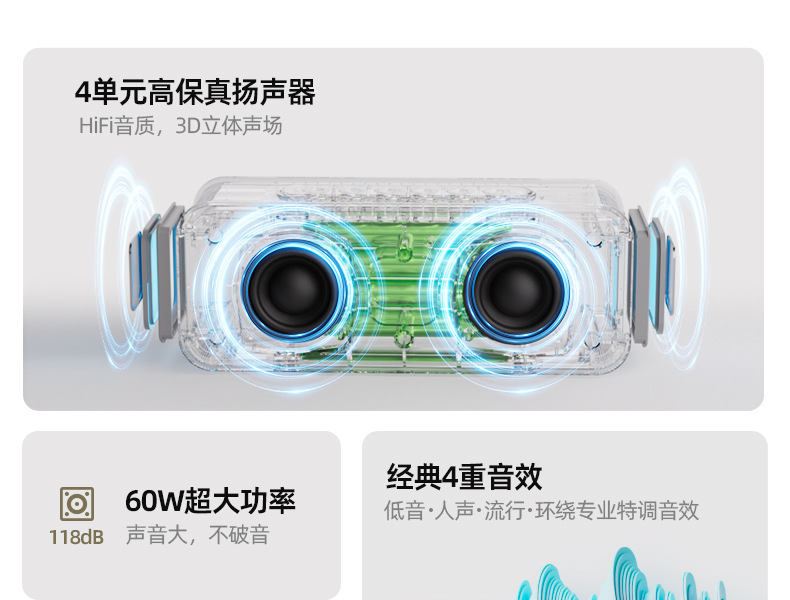 Wanyinba X12 블루투스 스피커 60W 고출력 데스크탑 홈 야외 휴대용 서브 우퍼 스피커