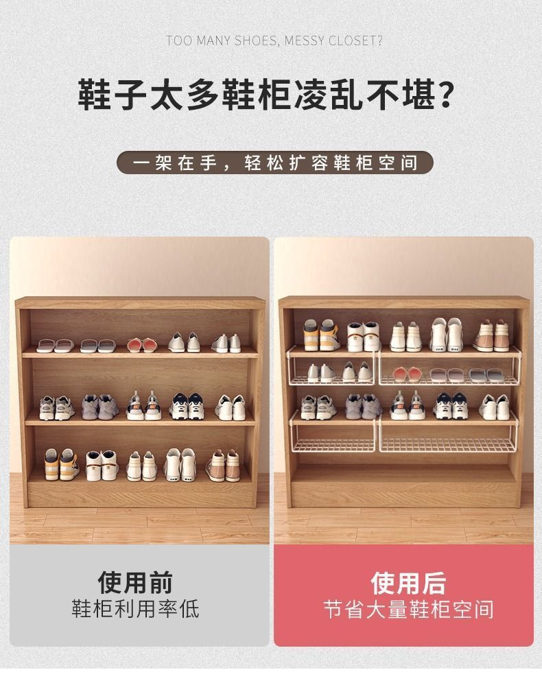 신발 랙 레이어드 신발 캐비닛 스토리지 랙 파티션 낮은 옷걸이 신발 브래킷 후크없는 설치 접이식 스토리지 확장 랙스토어 가기