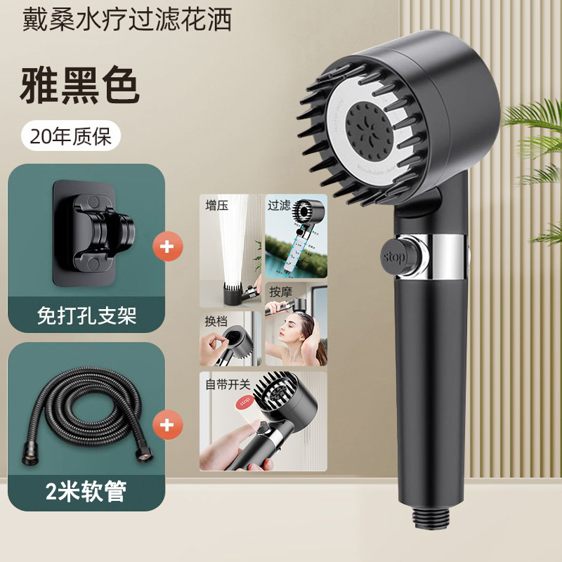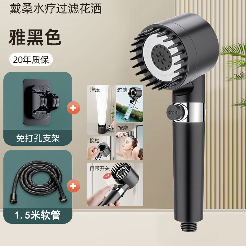 • [블랙 세트 1] 마사지 필터 샤워 + 1.5m 방폭 호스 + 브래킷