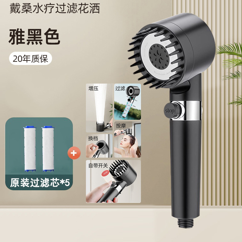 • [블랙 세트 1] 마사지 필터 샤워 + 필터 엘리먼트 5개