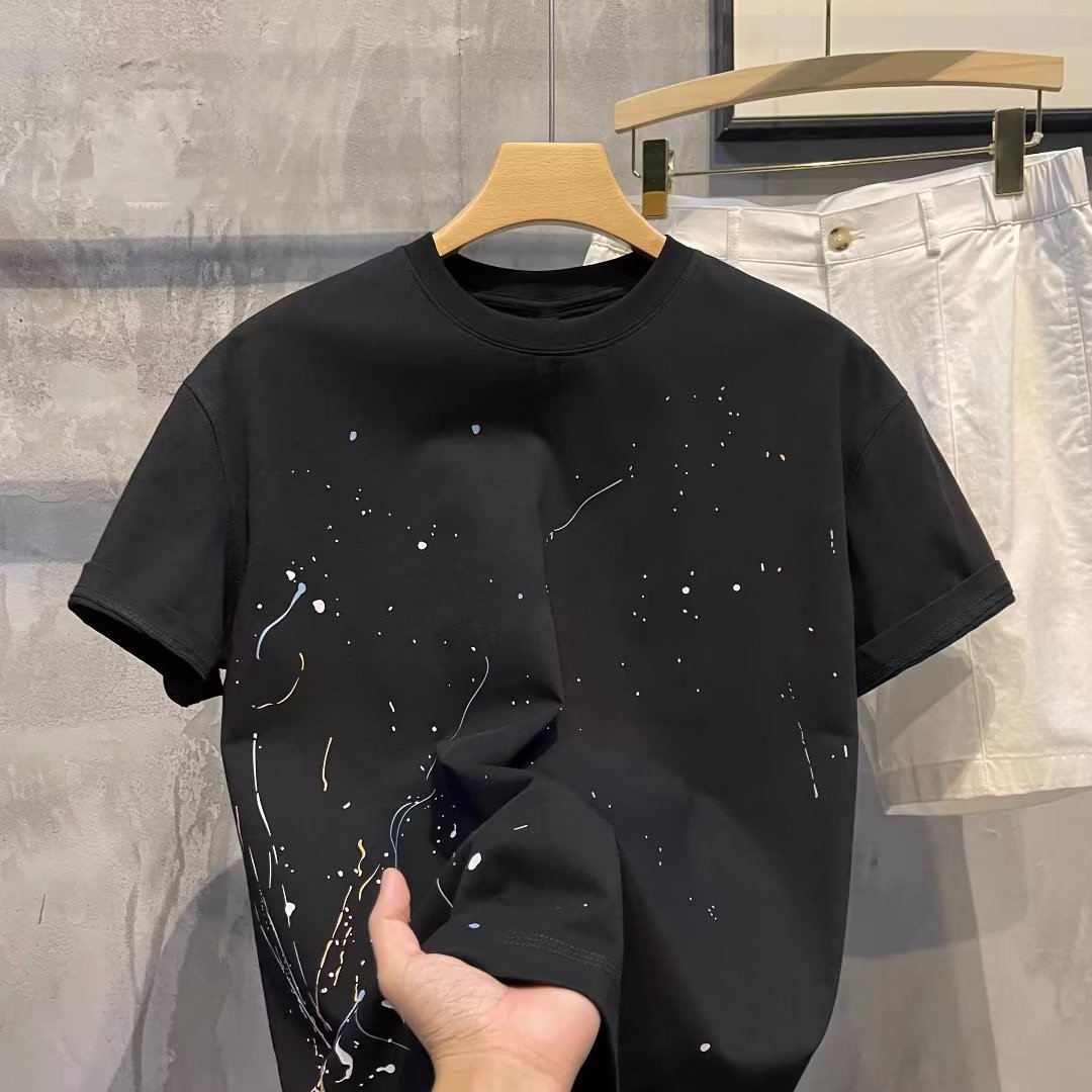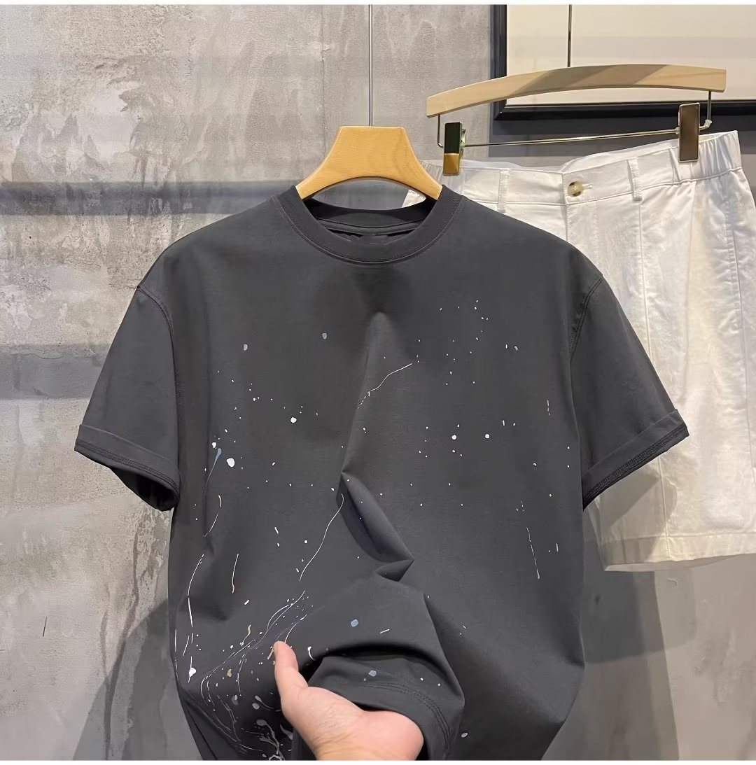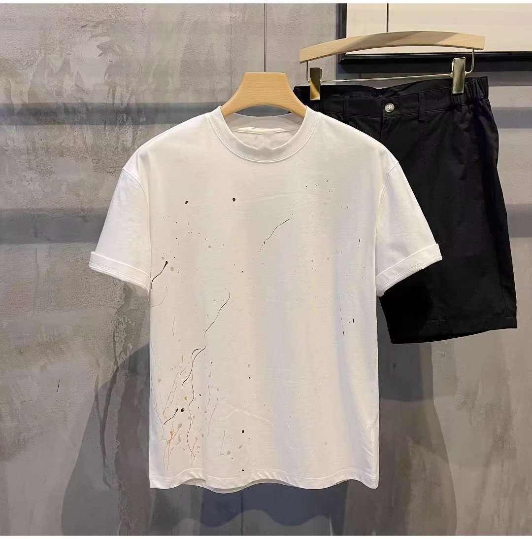 고품질 2025 여름 신상 반팔 티셔츠 남성 트렌디 브랜드 캐주얼 반팔 패션 티셔츠 이너웨어스토어 가기