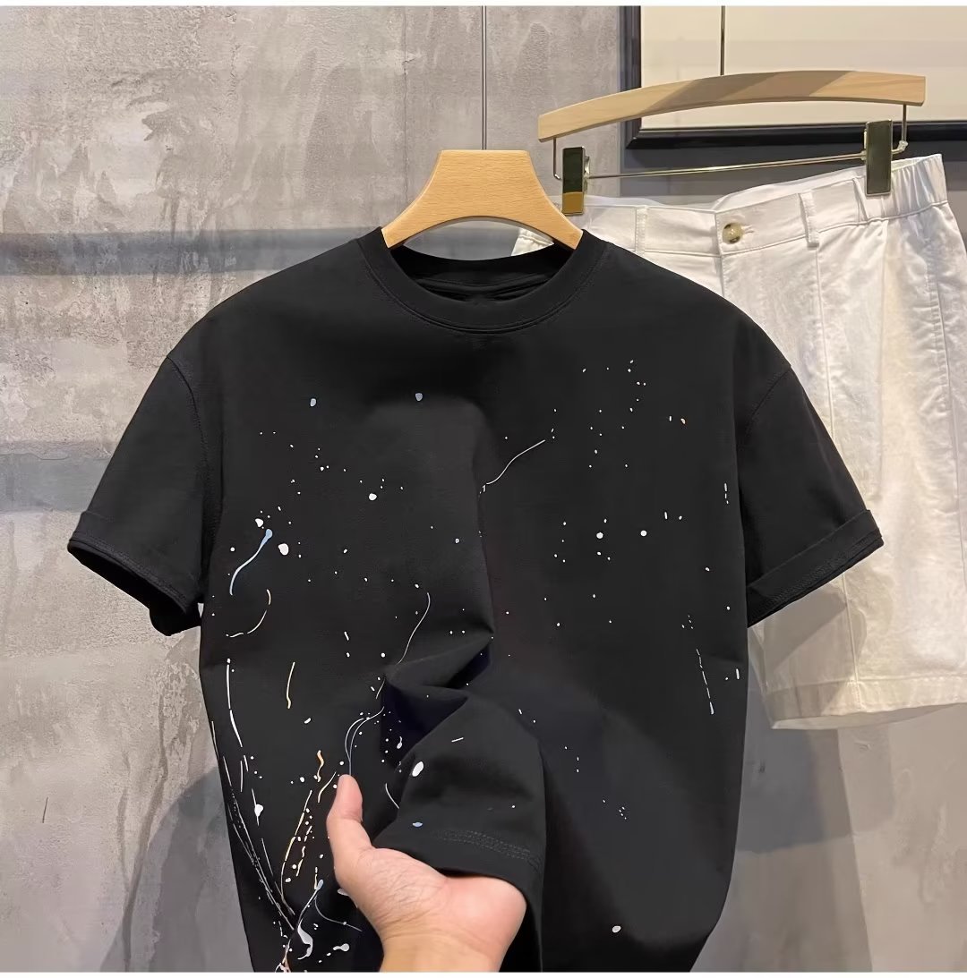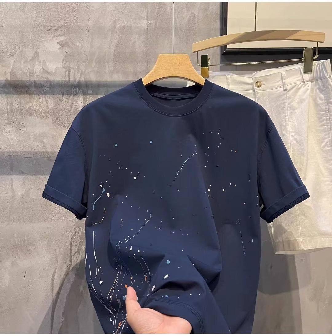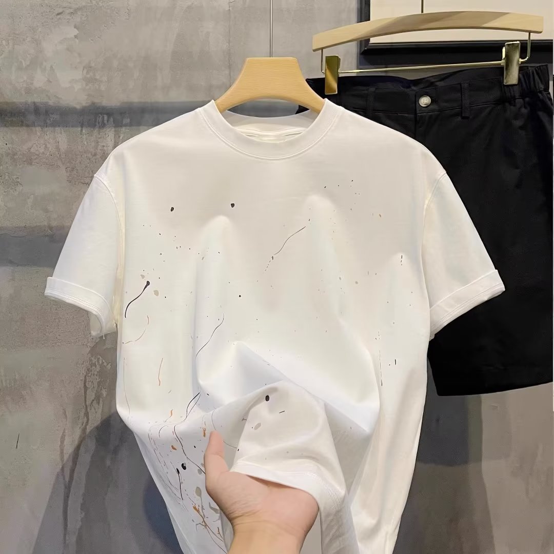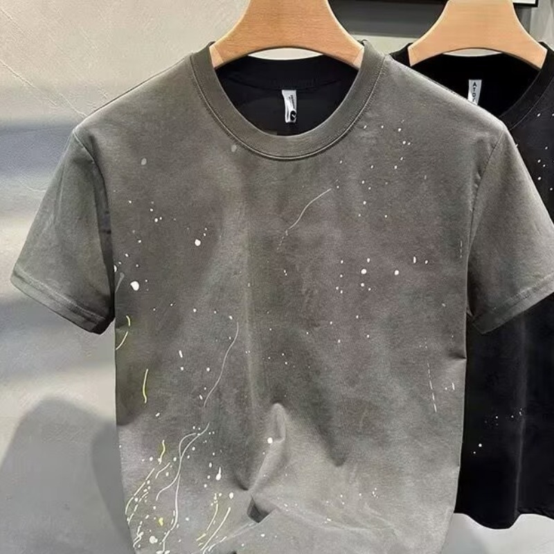 고품질 2025 여름 신상 반팔 티셔츠 남성 트렌디 브랜드 캐주얼 반팔 패션 티셔츠 이너웨어스토어 가기