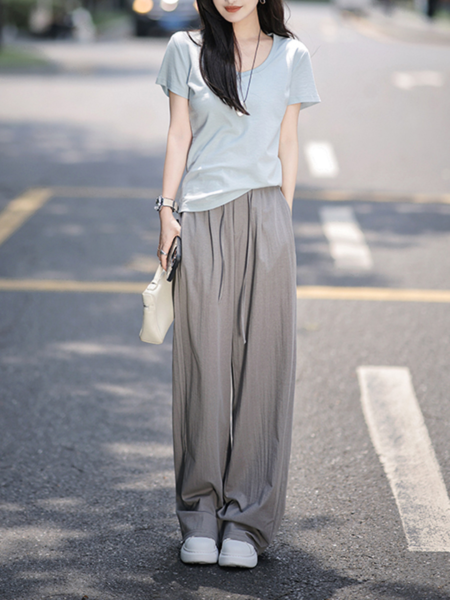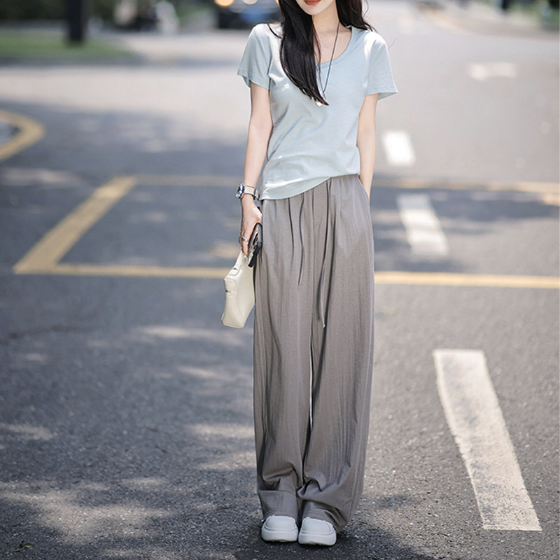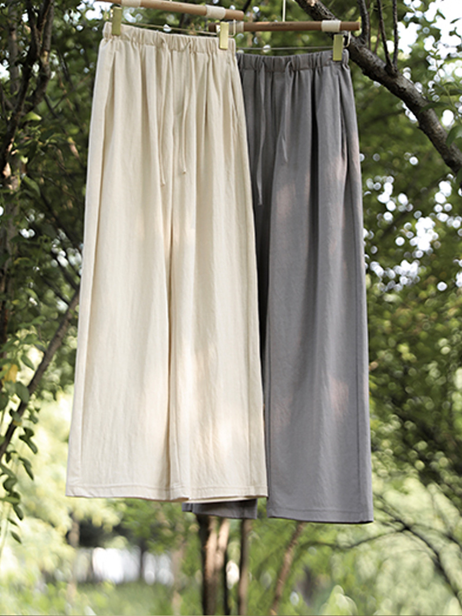 [오후 자외선 차단제 바지] 편안한 린넨 블렌드 가볍고 건조한 느낌 탄성 허리 포켓 캐주얼 야마모토 바지 여성용 여름스토어 가기