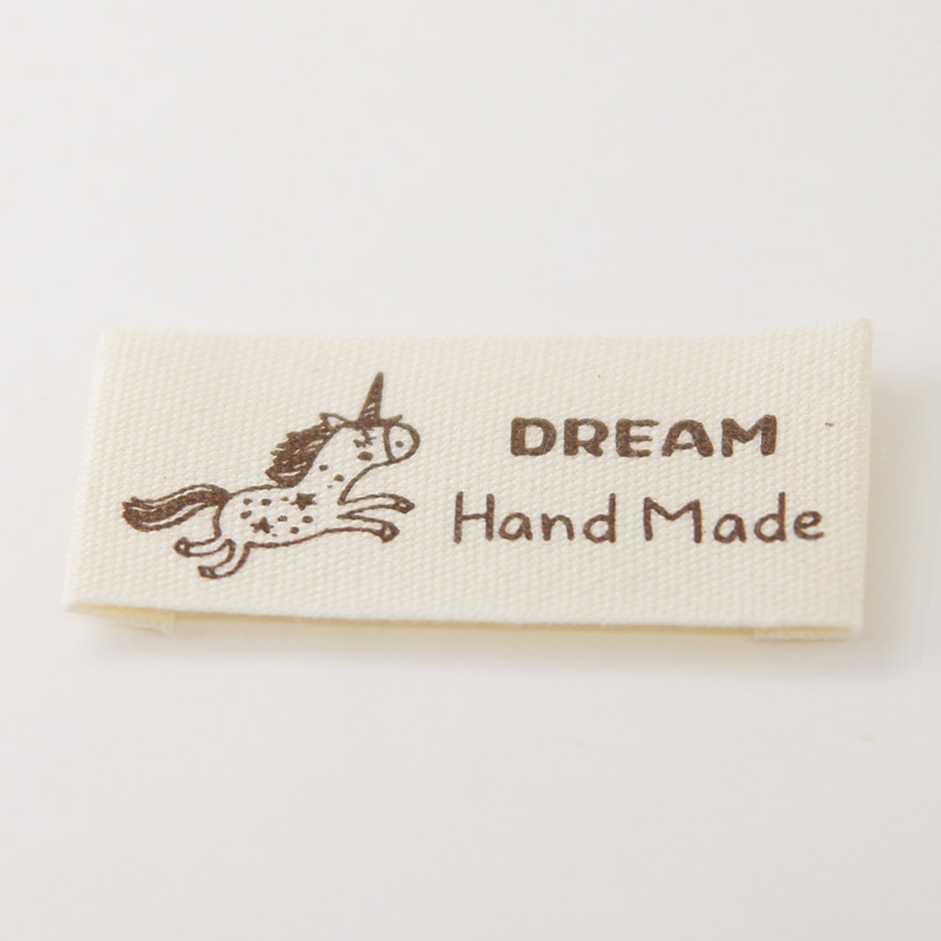 알파카 양 유니콘 토끼 별을 다크 브라운 새로운 다크 브라운 천 라벨 재고 손으로 인쇄 된 마크 헴