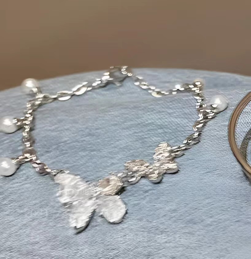 그라디언트 블루 크리스탈 나비 팔찌 여성의 여름 새 달콤한 틈새 우아한 진주 펜던트 여자 친구 팔찌스토어 가기