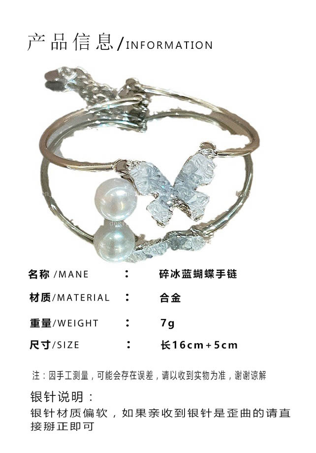 • 분쇄 된 얼음 블루 나비 팔찌 S0873B