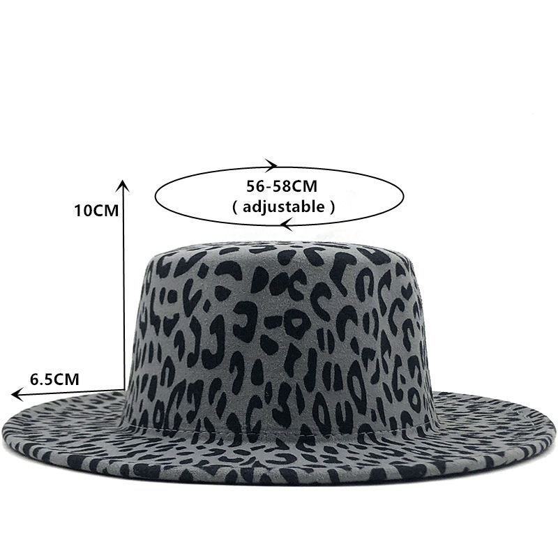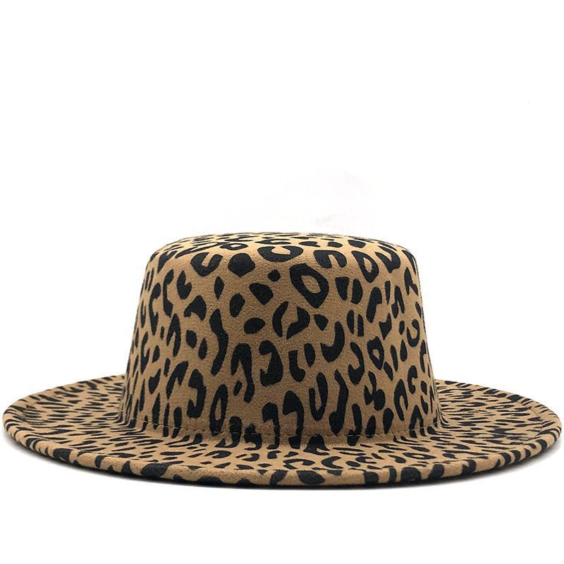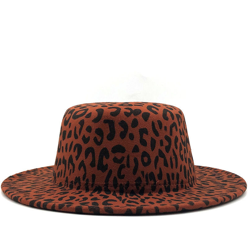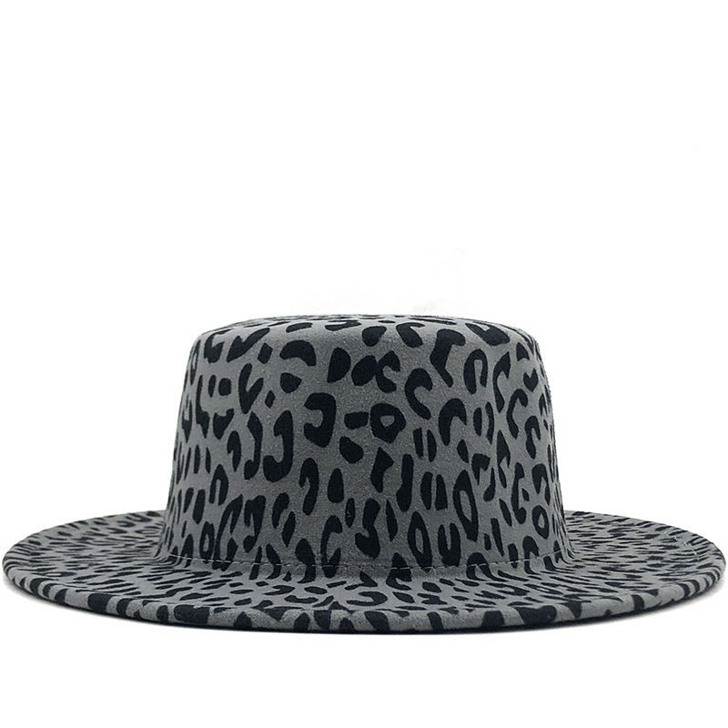 플랫 탑 모자 국경 아마존 가을과 겨울 새로운 영국 모직 레오파드 모자 어린이 플랫 브림 빅 브림 펠트 모자