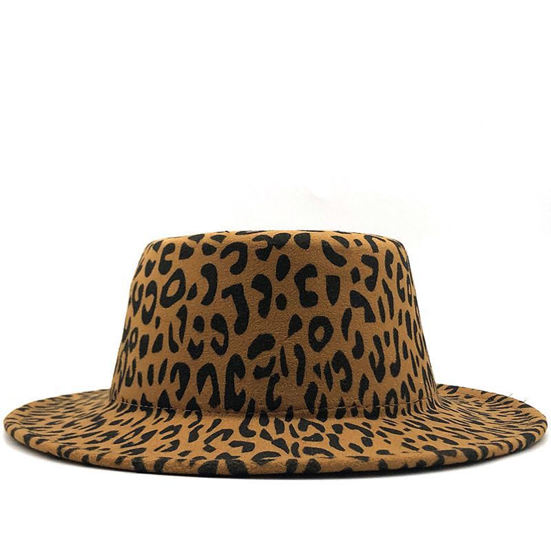 플랫 탑 모자 국경 아마존 가을과 겨울 새로운 영국 모직 레오파드 모자 어린이 플랫 브림 빅 브림 펠트 모자스토어 가기