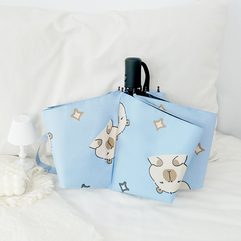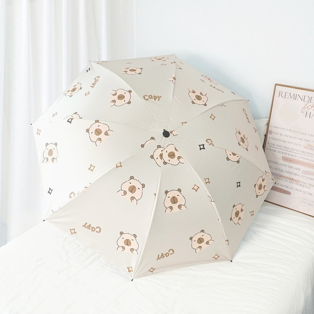 자동 카피발라 귀여운 우산 여성 만화 카피바라 접히는 우산 맑고 비 이중 목적 선 스크린 검은 고무 우산스토어 가기