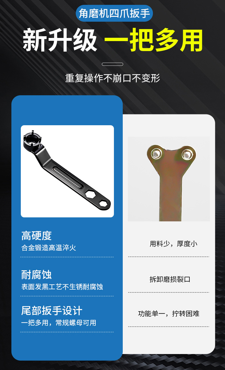 새로운 100 앵글 그라인더 포턱 렌치 새로운 업그레이드 된 두꺼운 고경도 6-in -1 확장 앵글 그라인더 렌치