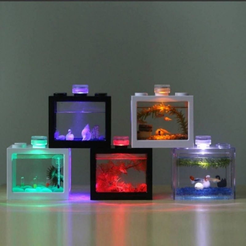 건물 블록 양동이 물고기 상자 탱크 미니 작은 풍경 테이블 컵 창조적 인 생태 마이크로 풍경 상자 해초 공 스톨