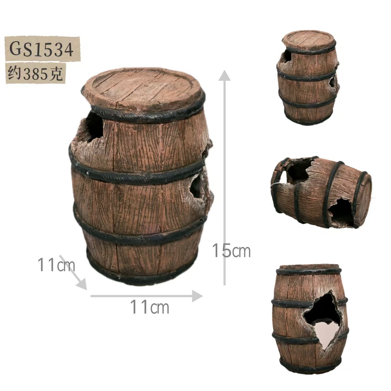 어항 나무통 와인통 조경 모형 레진 장식 소품 수족관 은신처 장식품 모형 나무통 조경