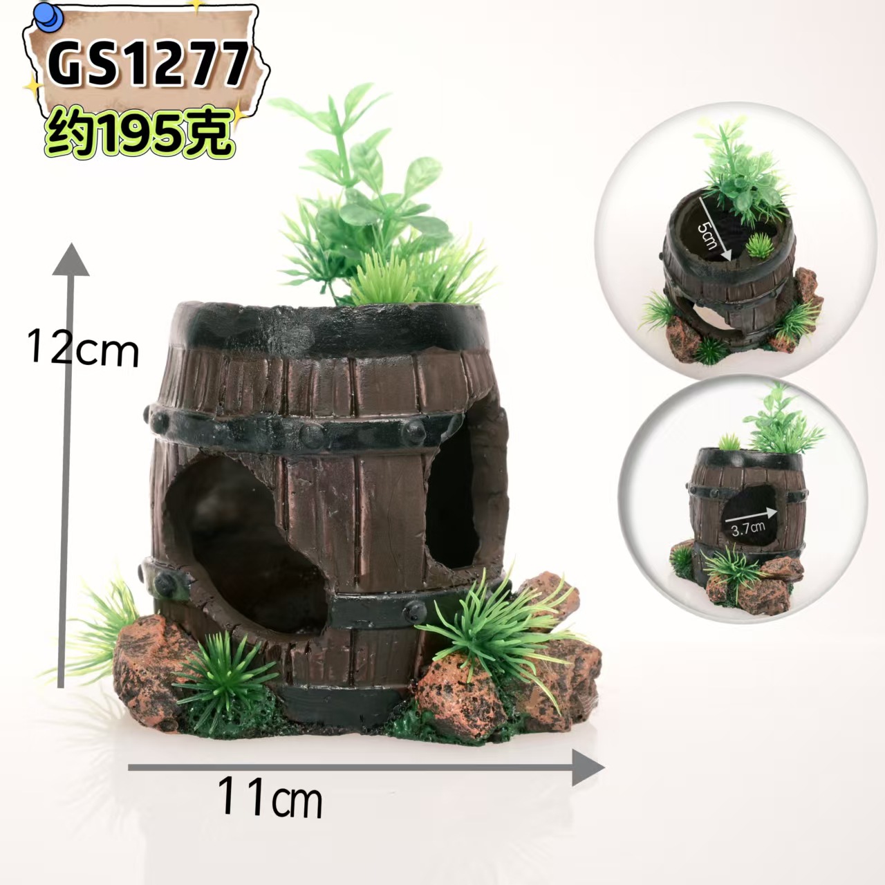 어항 나무통 와인통 조경 모형 레진 장식 소품 수족관 은신처 장식품 모형 나무통 조경스토어 가기