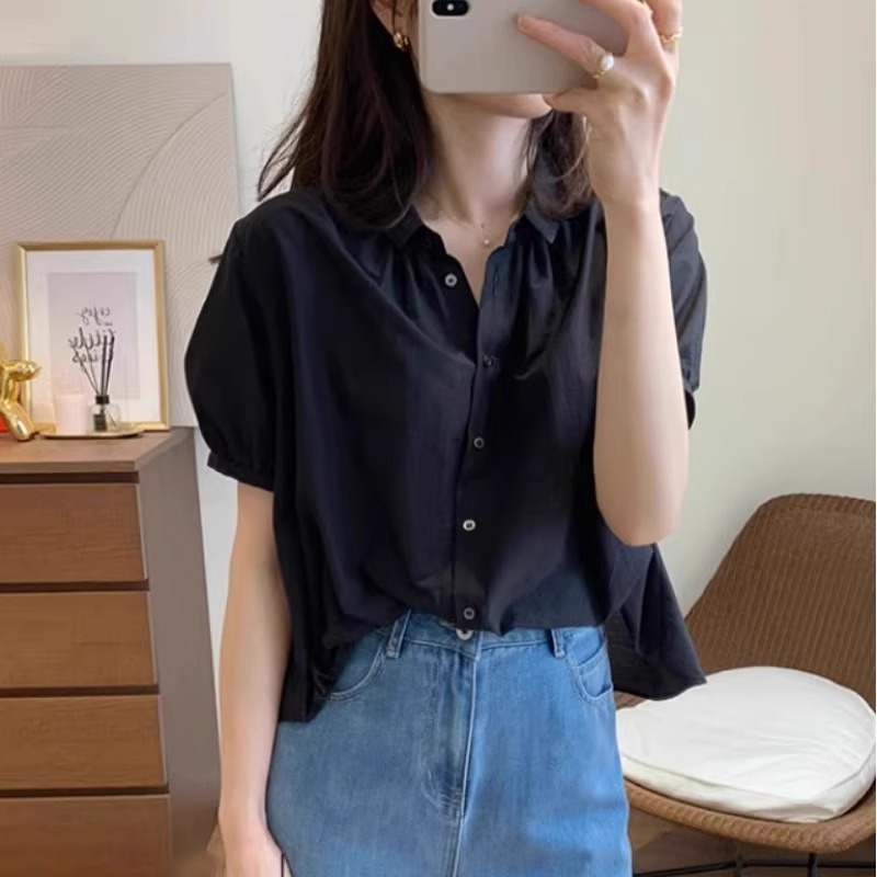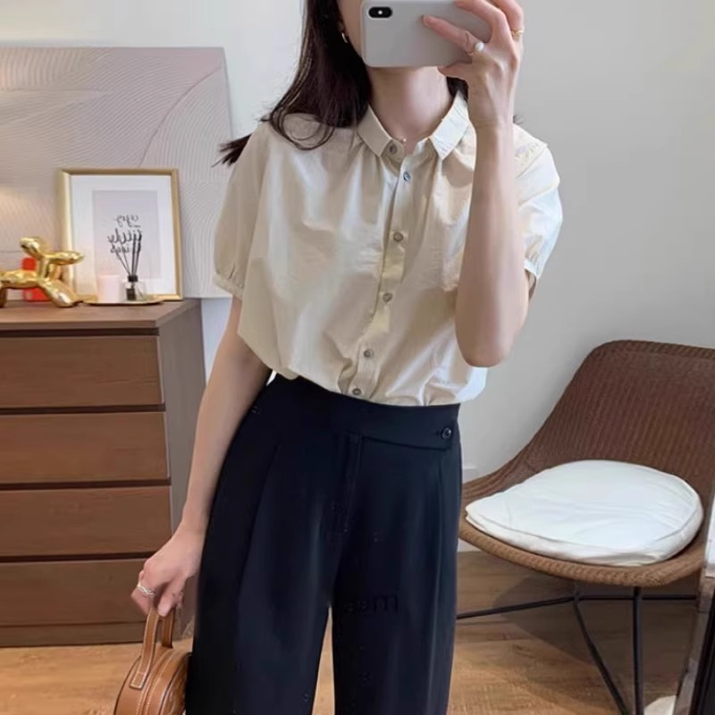 여름 새로운 반팔 셔츠 숙녀 우아한 통근 착용 독특한 작은 옷깃 달콤한 탑스토어 가기