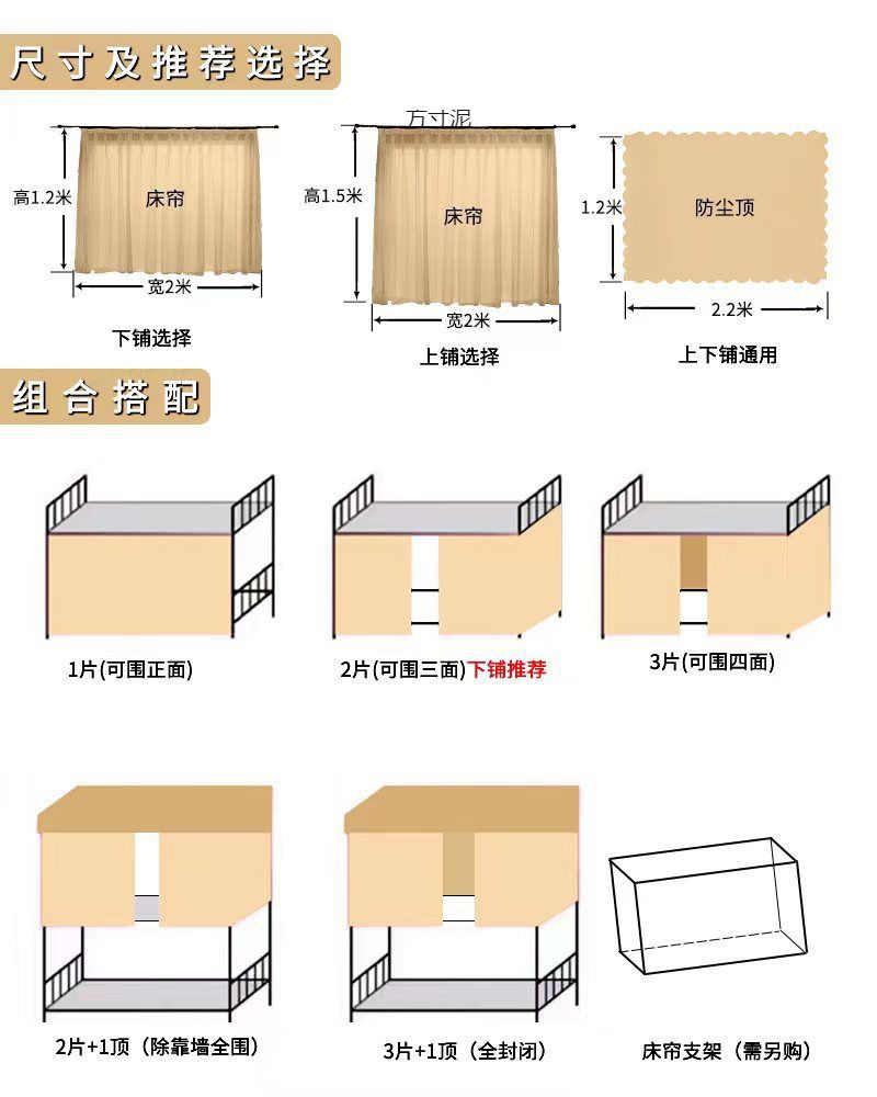 불투명 한 음영 학생 기숙사 침대 커튼 상단과 하한 번들 두꺼운 음영 커튼 소년 소녀를위한 간단한 음영 천 아마존