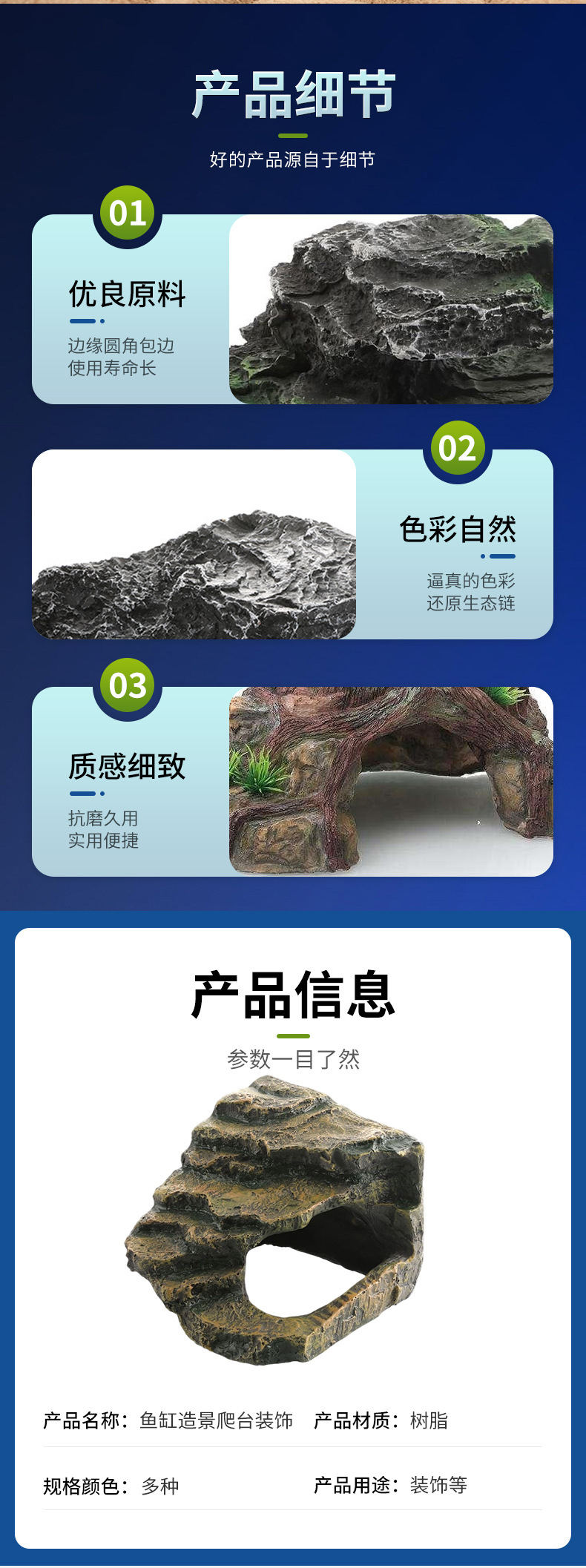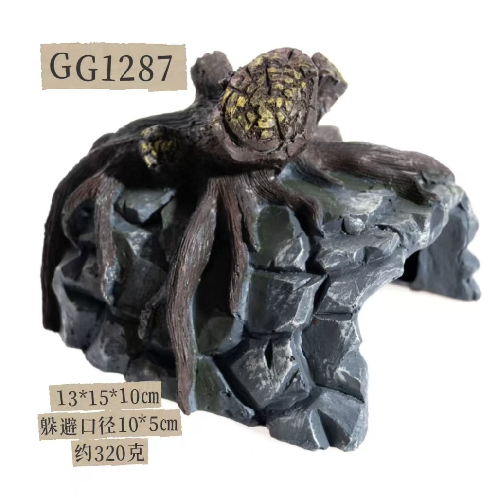 물고기 탱크 조경 거북이 테이블 등반 테이블 수지 장식 수족관 공예 시뮬레이션 바위 등반 애완 동물 탈출 구멍 장식품