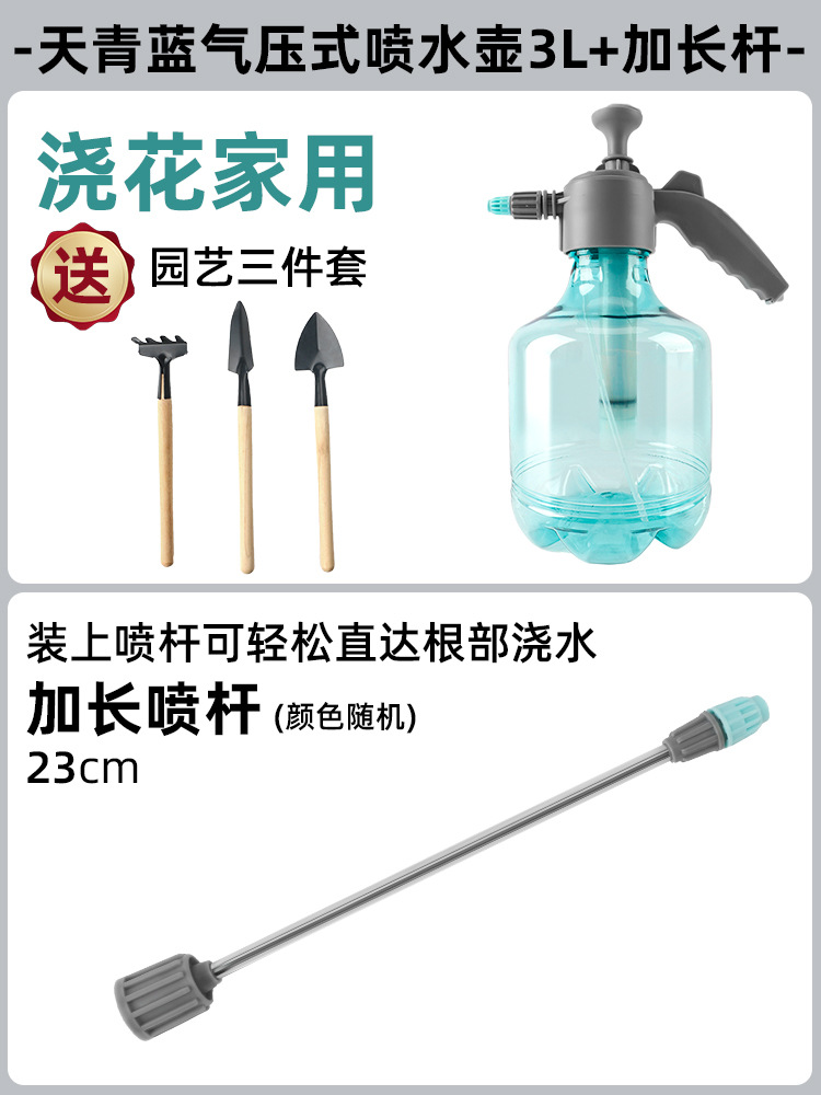 • ✅기간 한정 특별 제공✅Azure Blue 3L 투명 꽃 급수 고압 물뿌리개 + 연장 막대 - 무료 원예