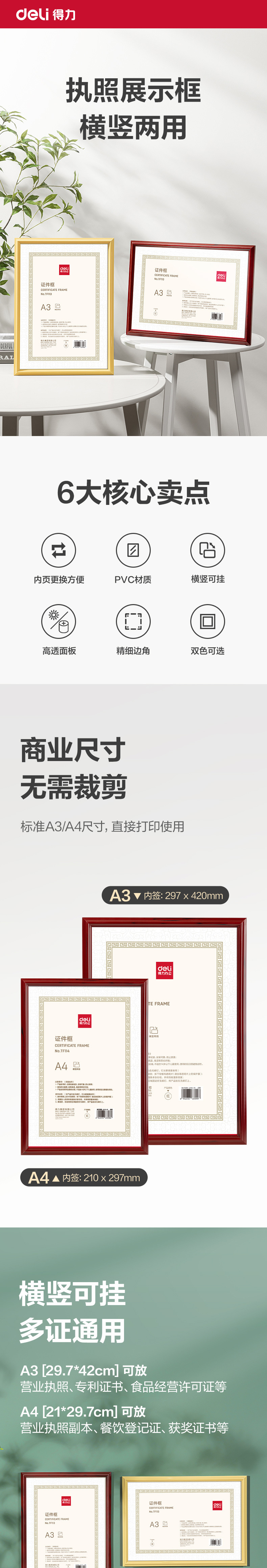 델리 TF113/TF114 비즈니스 라이센스 프레임 카피 a3 사진 프레임 매달려 벽 a4 인증서 액자 인증서 프레임
