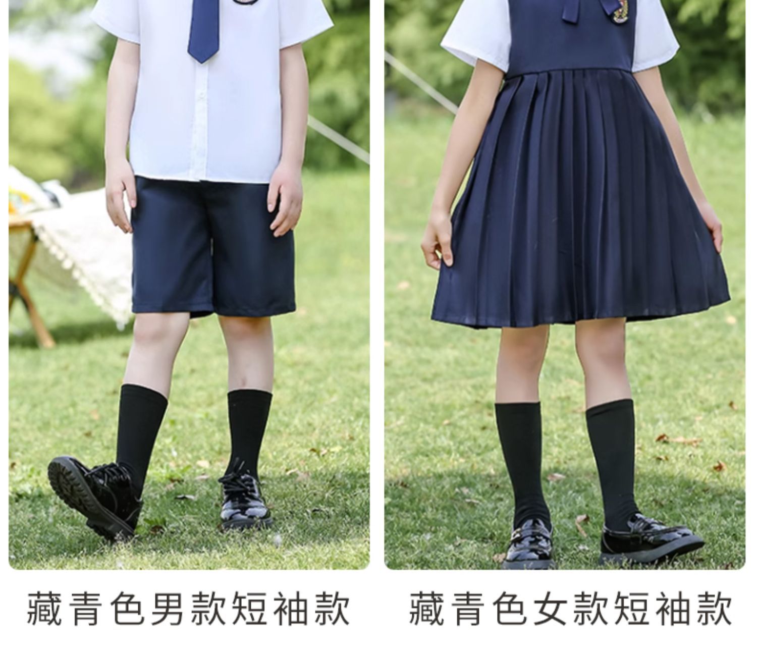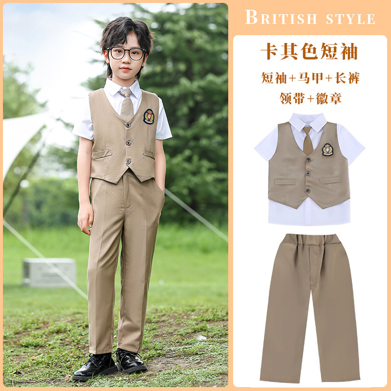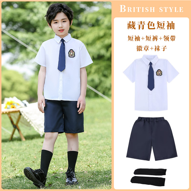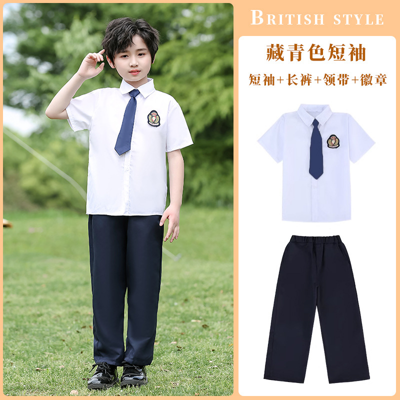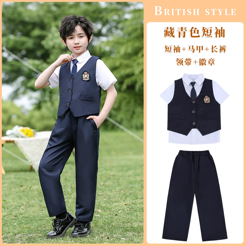 • 스타일 B 남성용 반팔 + 조끼 + 남색 바지 [무료 넥타이 + 뱃지]
