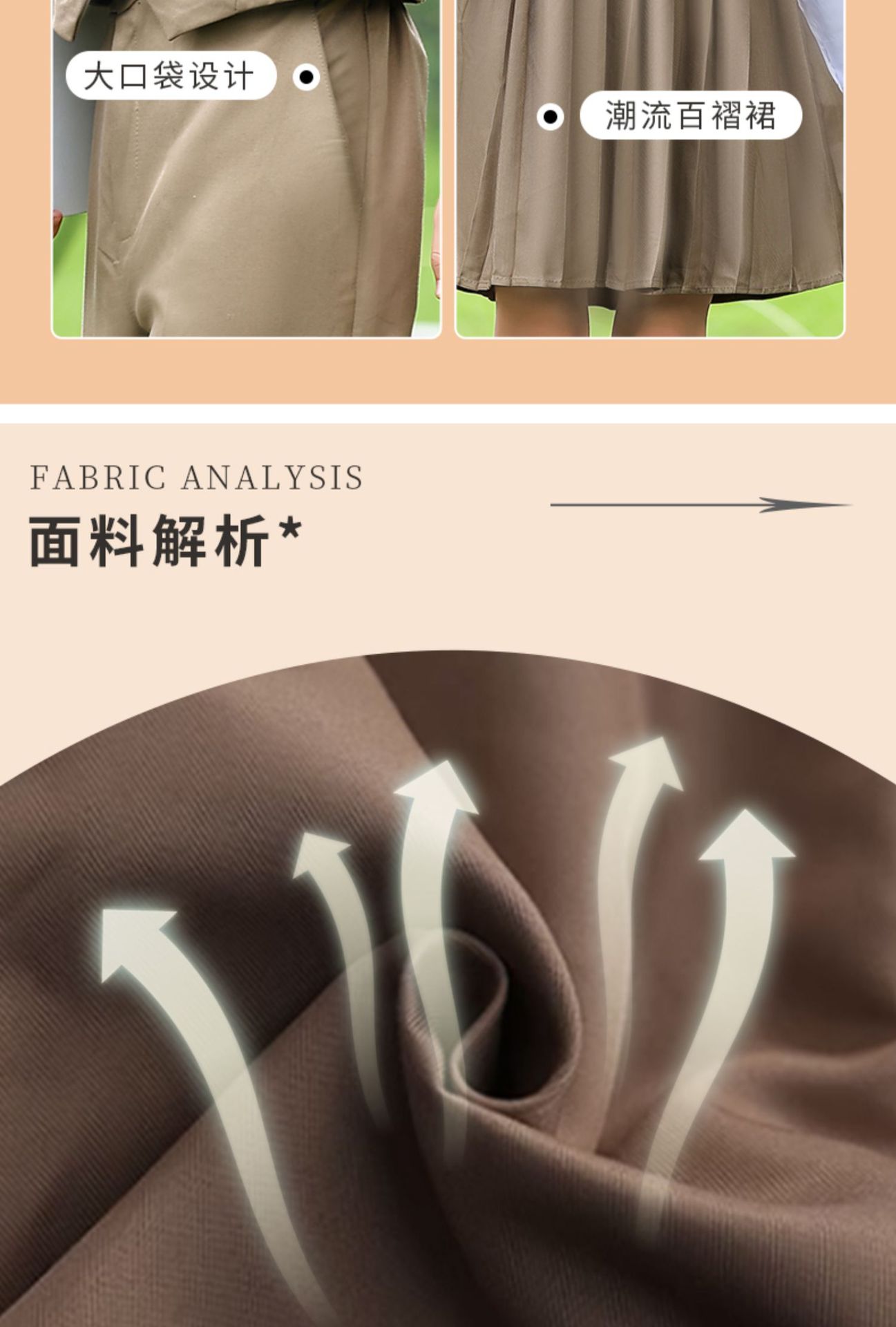 • B타입 여성용 반팔 + 카키 서스펜더 스커트 [무료 나비넥타이 + 양말 + 뱃지]