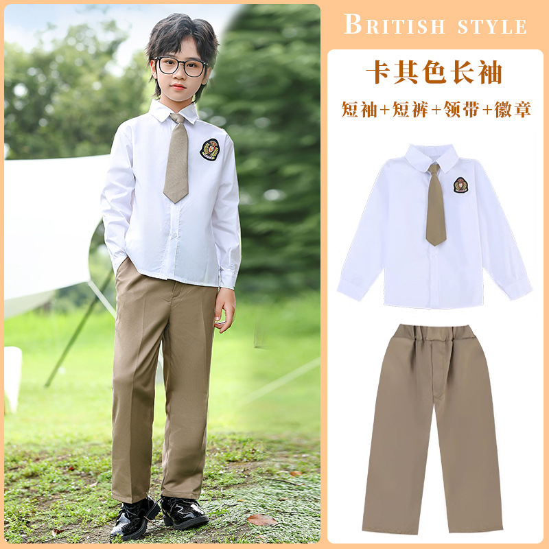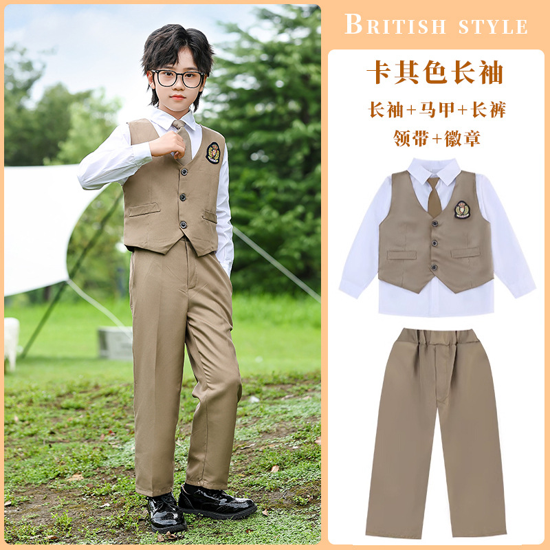 • B타입 남성용 긴팔 + 조끼 + 카키색 바지 [프리넥타이 + 뱃지]