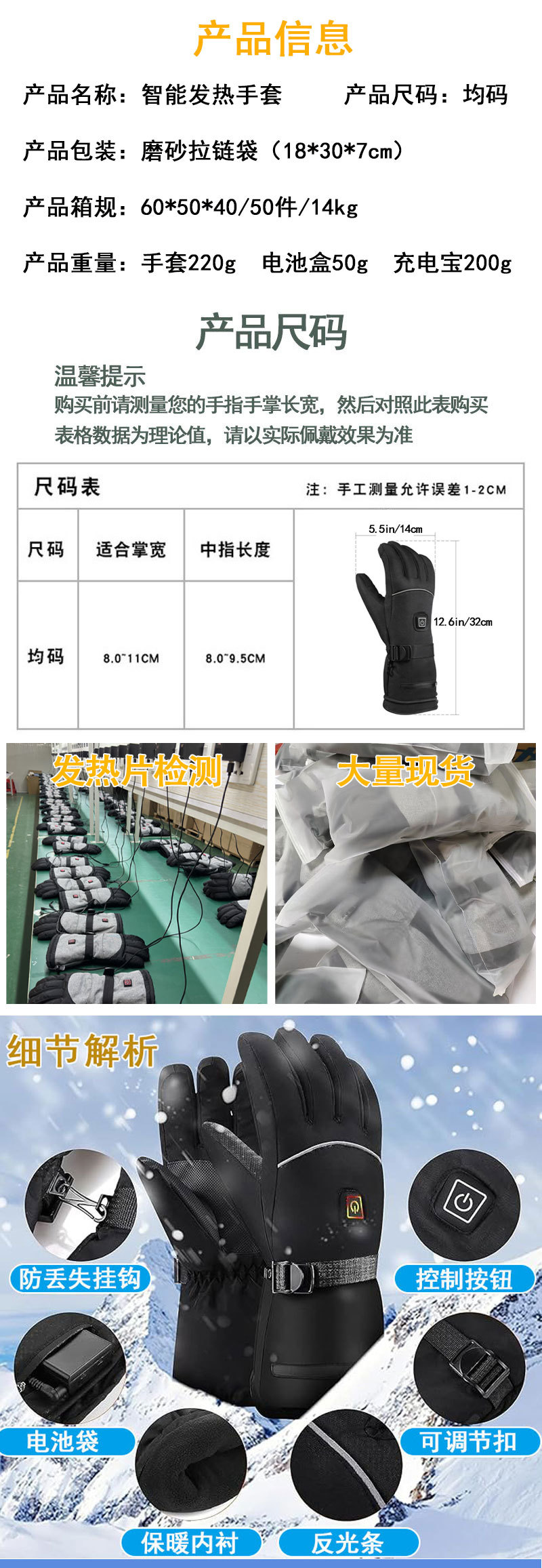 • 검정색 가열 장갑 + 5000mAh 배터리 1쌍