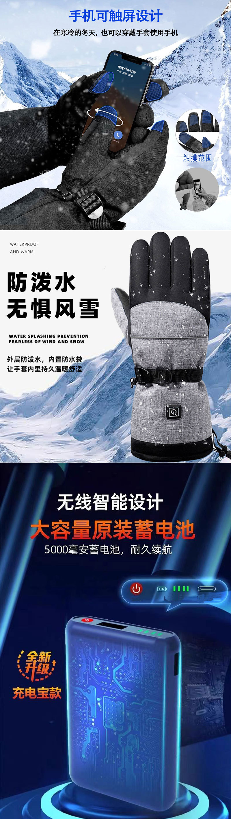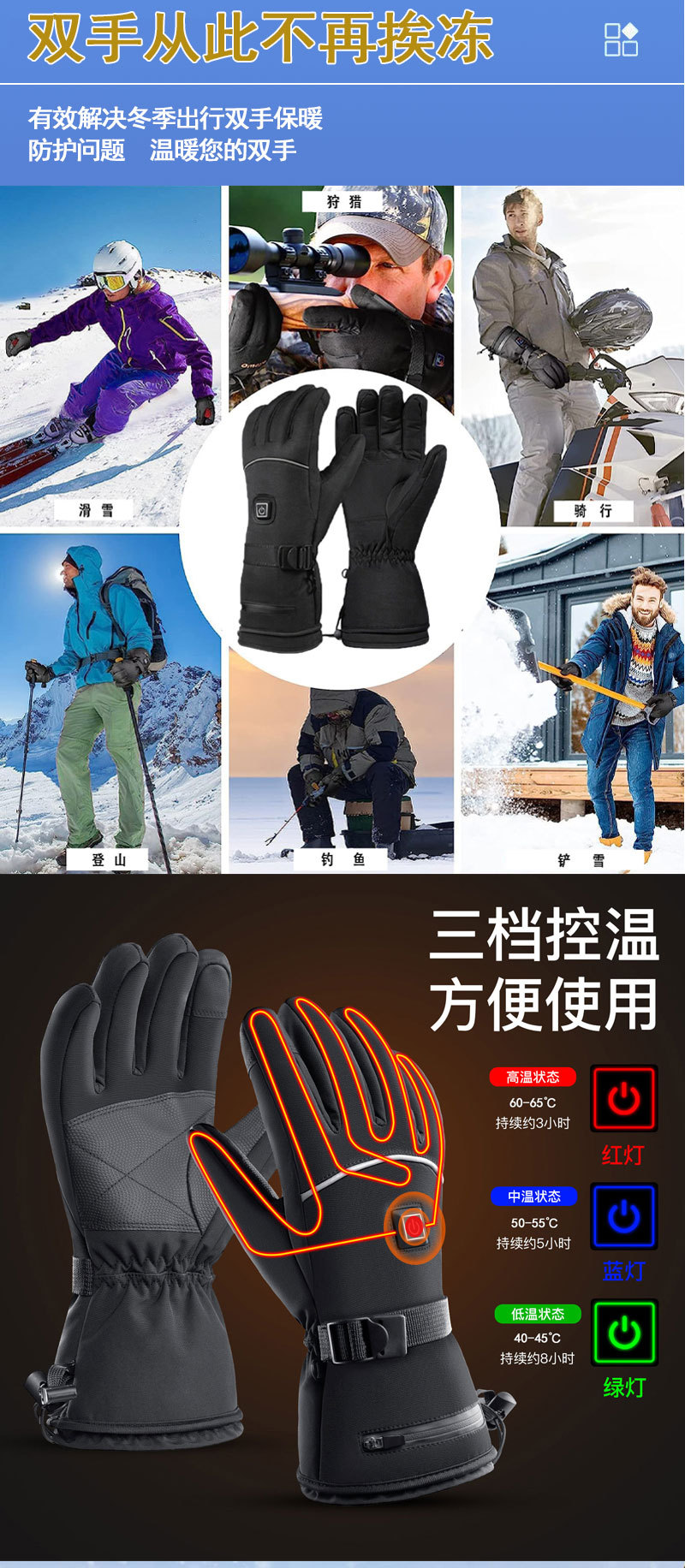 겨울 스마트 난방 장갑 야외 승마 스키 남녀 스마트 난방 장갑 냉장 따뜻한 전기 난방 장갑