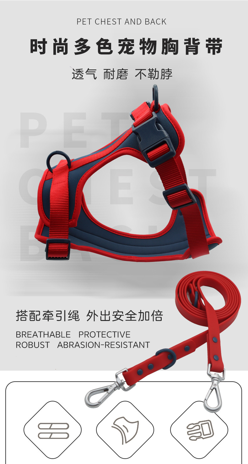 패션 새로운 애완 동물 제품 컬러 매칭 가슴 백 PVC Macaron 가죽 끈 개 하네스 방수 개 걷는 가죽 끈 개 체인스토어 가기