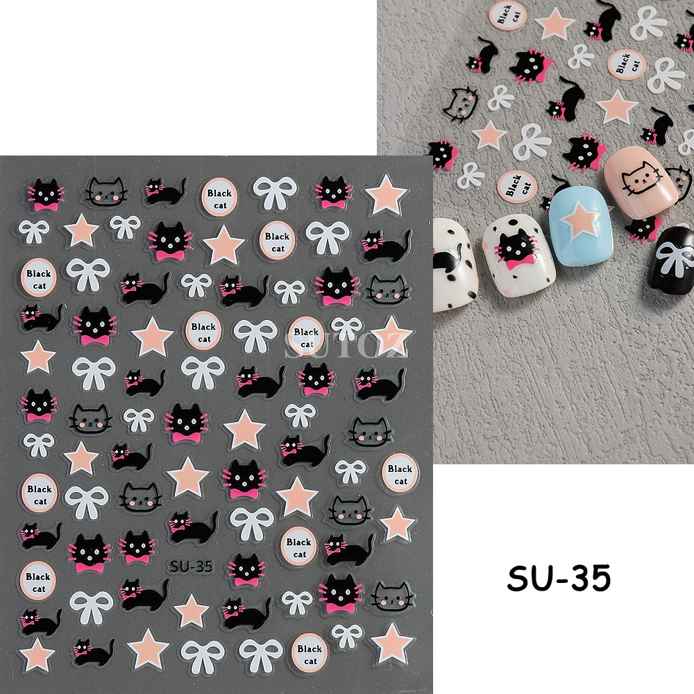 철자 저녁 새로운 네일 아트 스티커 Instagram 귀여운 작은 검은 고양이 스타 소녀 하트 네일 다시 접착 스티커스토어 가기