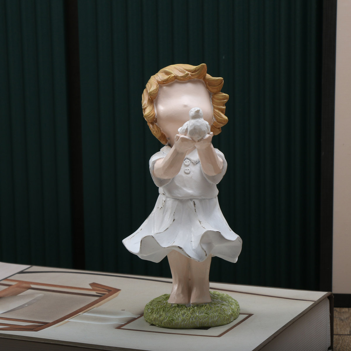 • 나무 조각 손을 잡고 비둘기를 들고 소녀