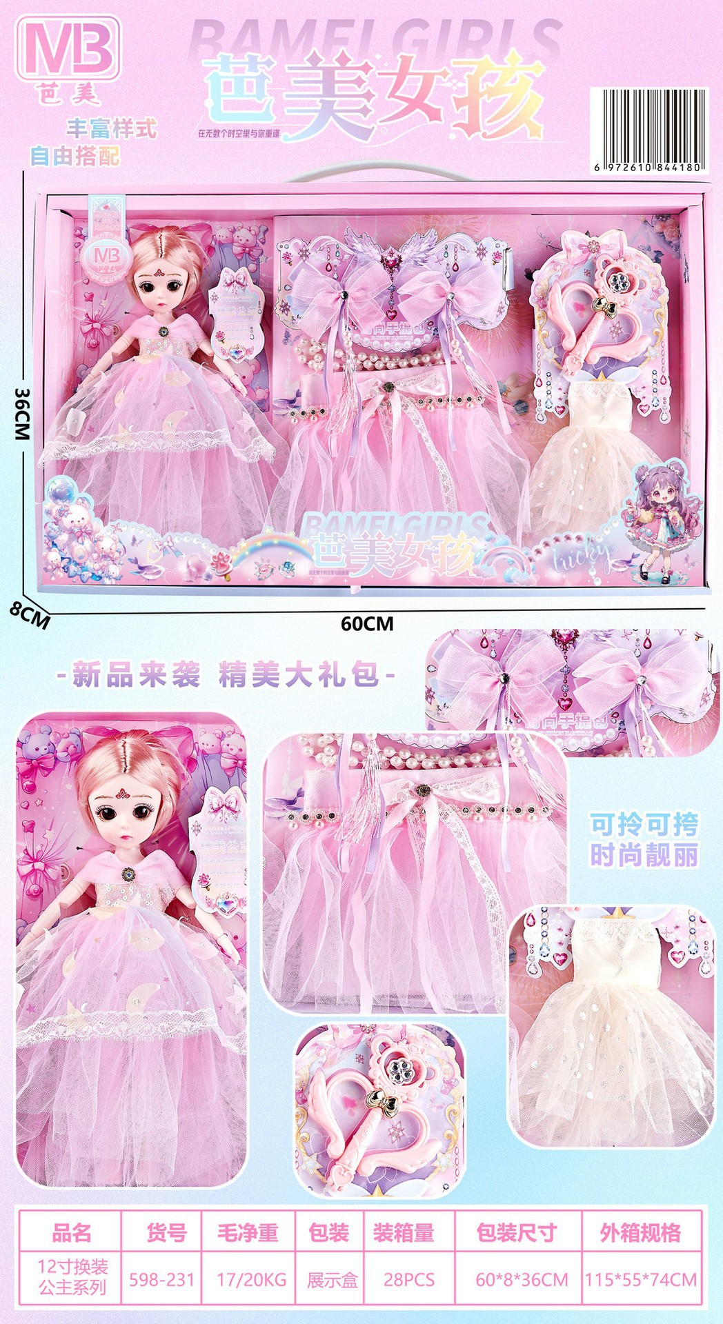 큰 선물 상자 원피스 업 골동품 공주 바비 인형 세트 어린이 소녀 장난감 훈련 기관 선물 도매스토어 가기