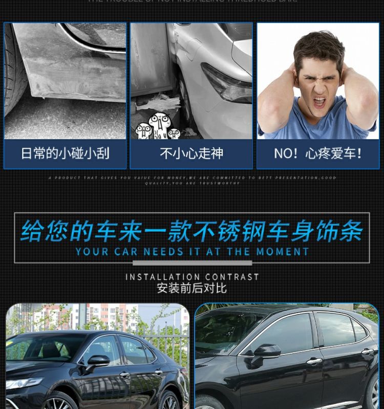 18-23 Toyota 8 세대 Camry 바디 트림, 사이드 스커트, 도어 에지 밝은 스트립, 도어 충돌 방지 스트립 수정에 적합스토어 가기