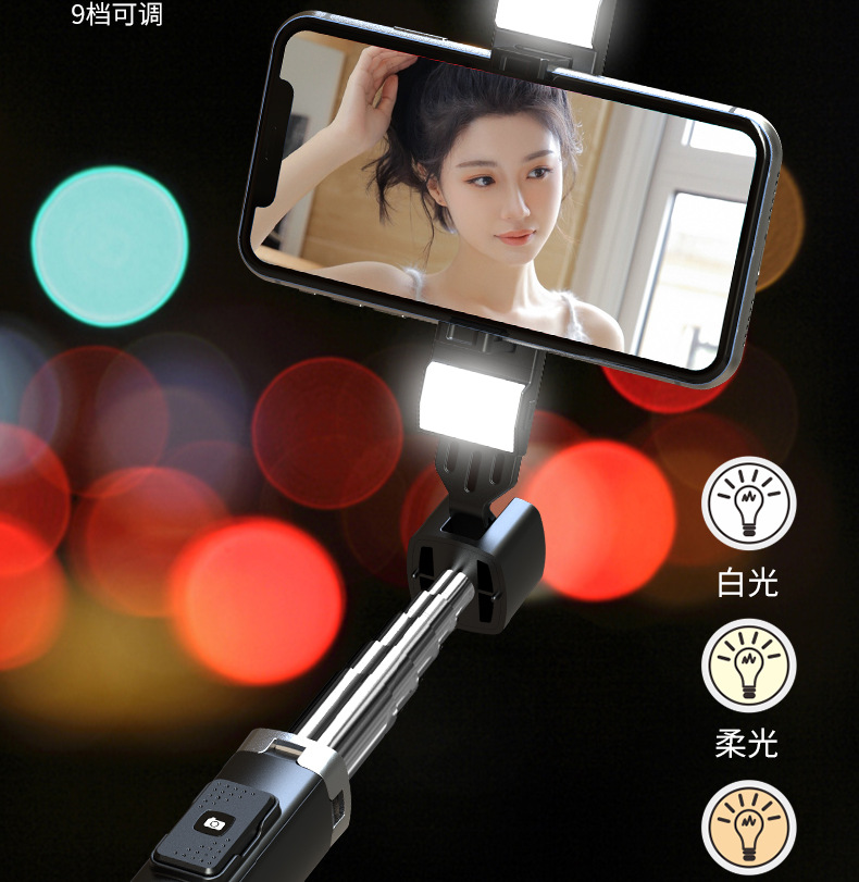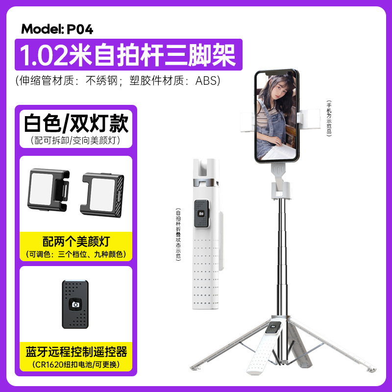 • P04-V2 전화 셀카 스탠드/스테인레스 스틸/화이트 더블 라이트