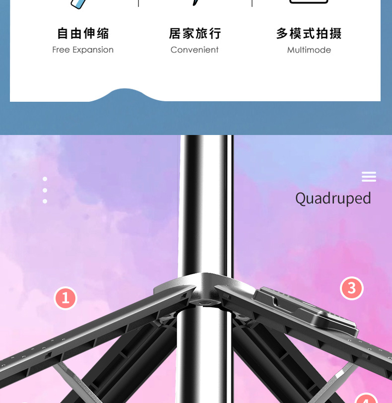 P04 휴대 전화 셀카 브래킷 스테인레스 스틸 여행 휴대용 사진 아티팩트 4 중 블루투스 휴대 전화 브래킷 셀카