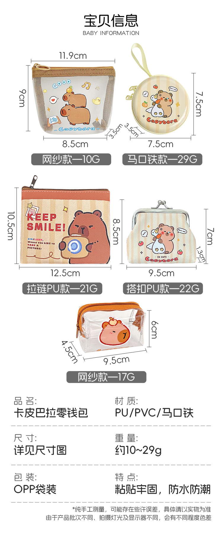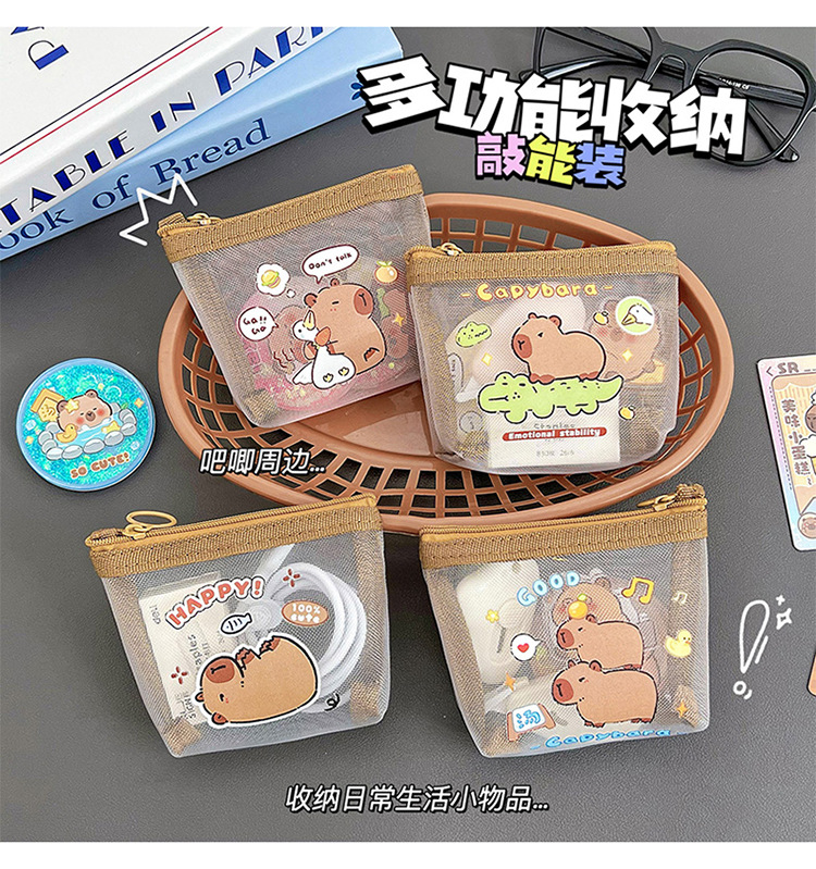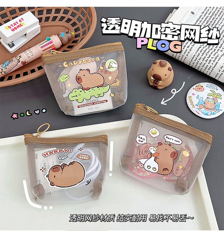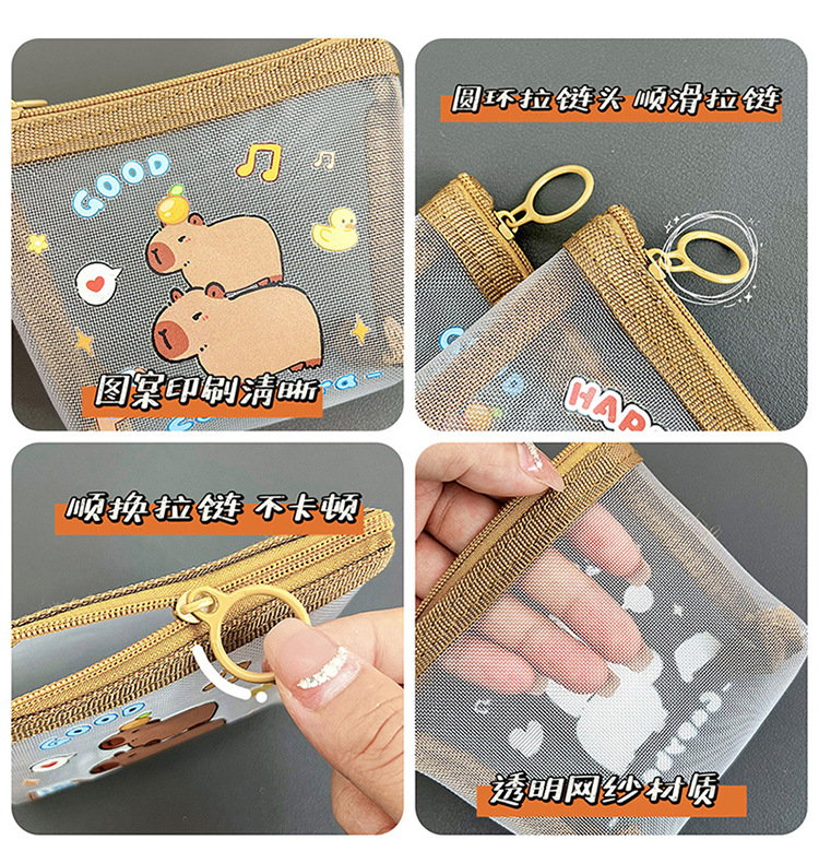 카피 발라 지퍼 메쉬 동전 지갑 스타 추격 카드 작은 지갑 카드 홀더 소녀의 심장 투명 메이크업 키 백스토어 가기
