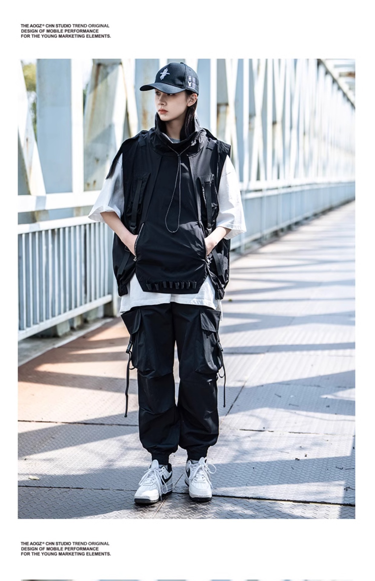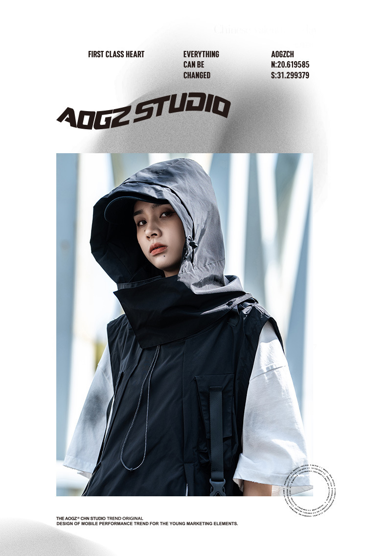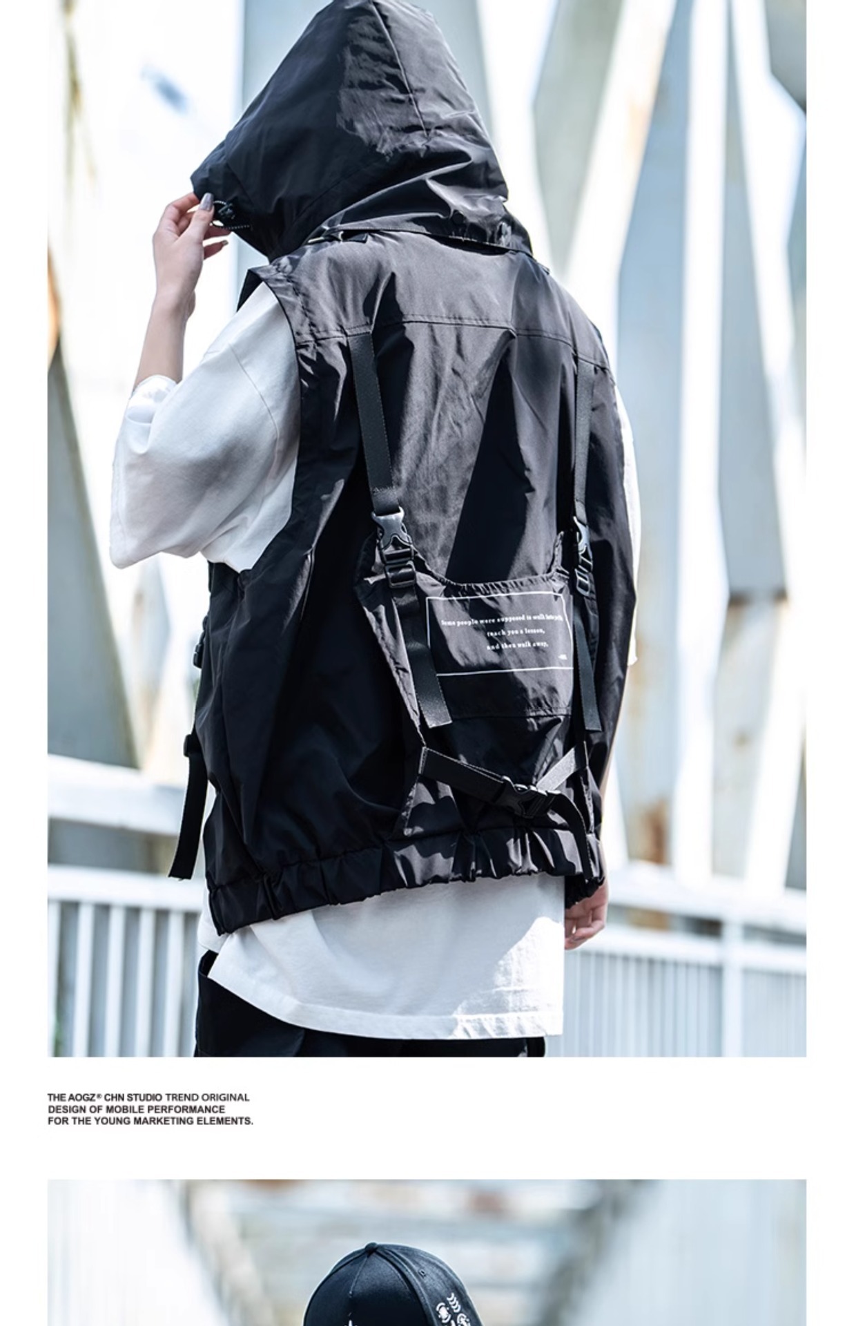 AOGZ 전국 패션 브랜드 기능성 스타일 풀오버 조끼 남자 후드 여름 2024 새로운 조끼 조끼 조끼 조끼 작업복스토어 가기