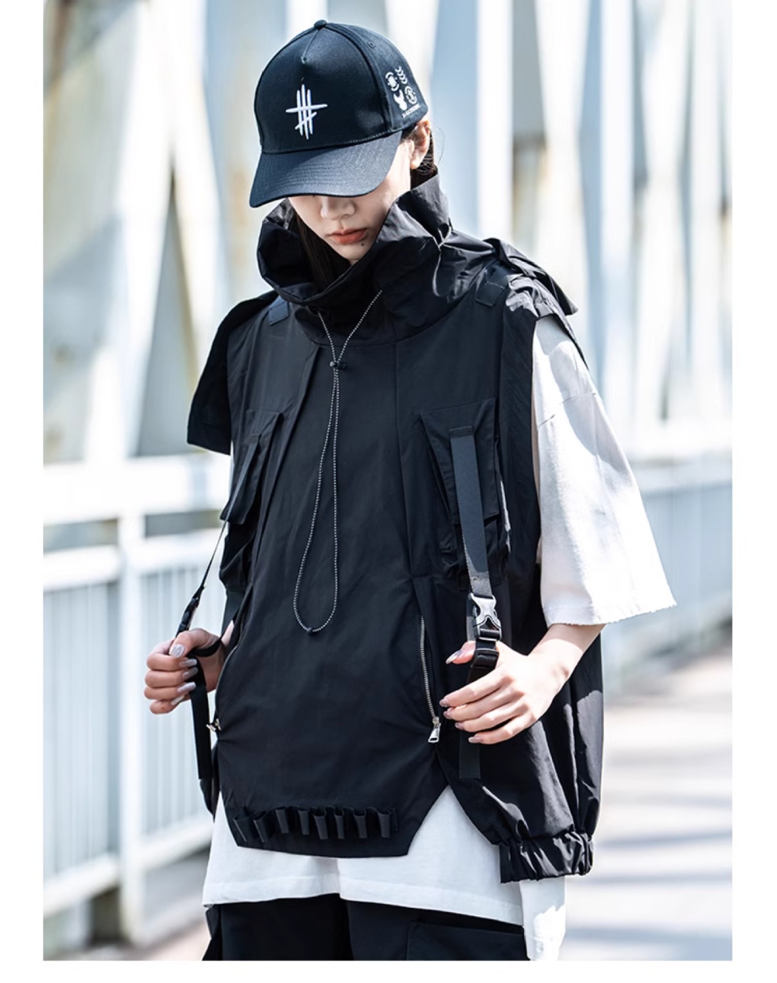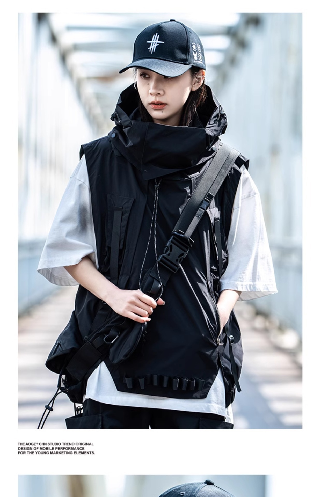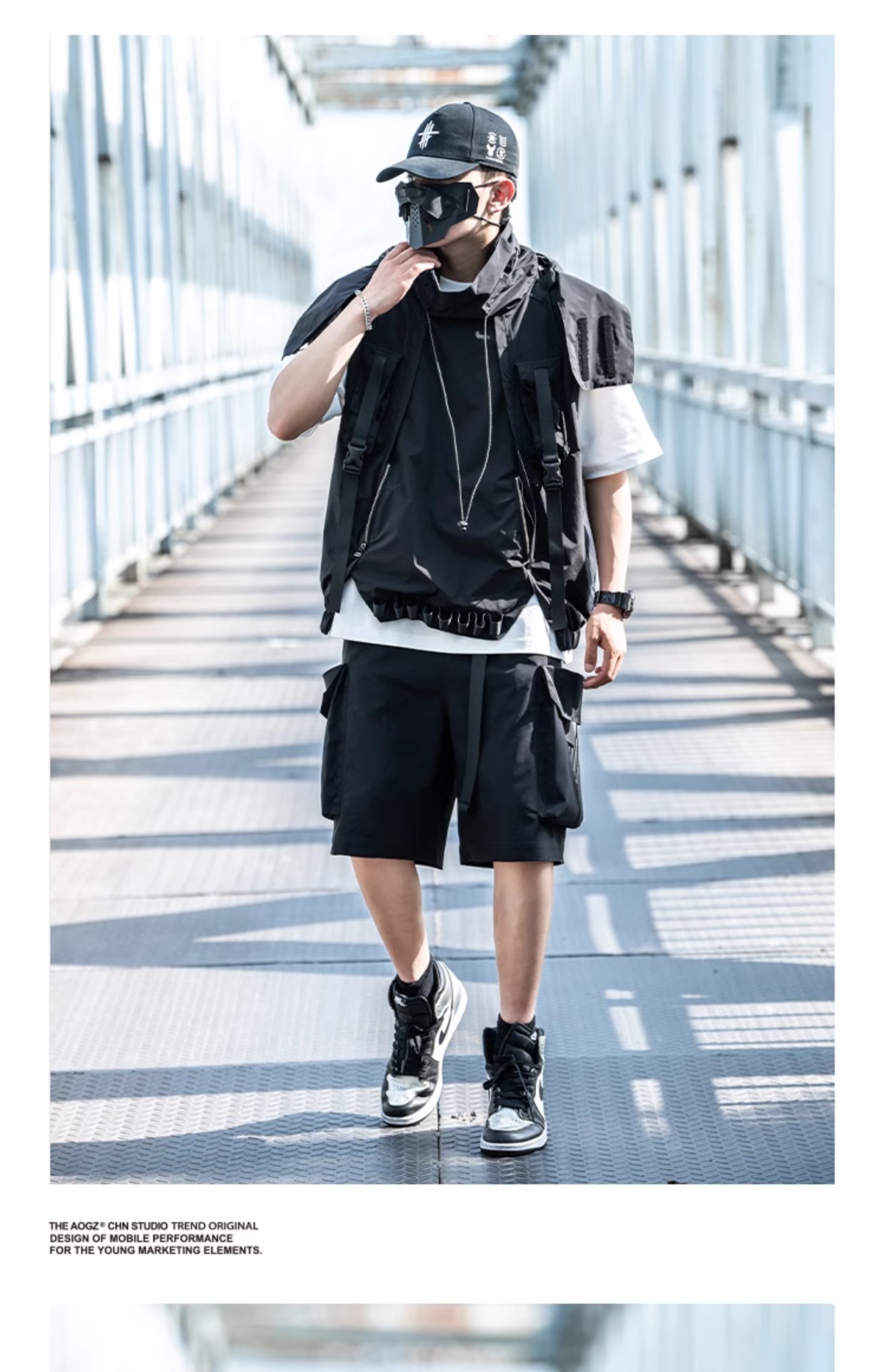 AOGZ 전국 패션 브랜드 기능성 스타일 풀오버 조끼 남자 후드 여름 2024 새로운 조끼 조끼 조끼 조끼 작업복스토어 가기