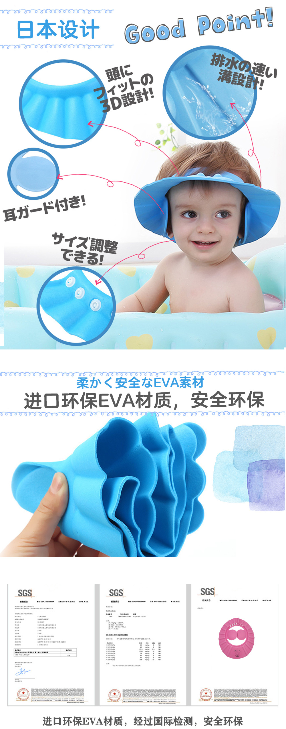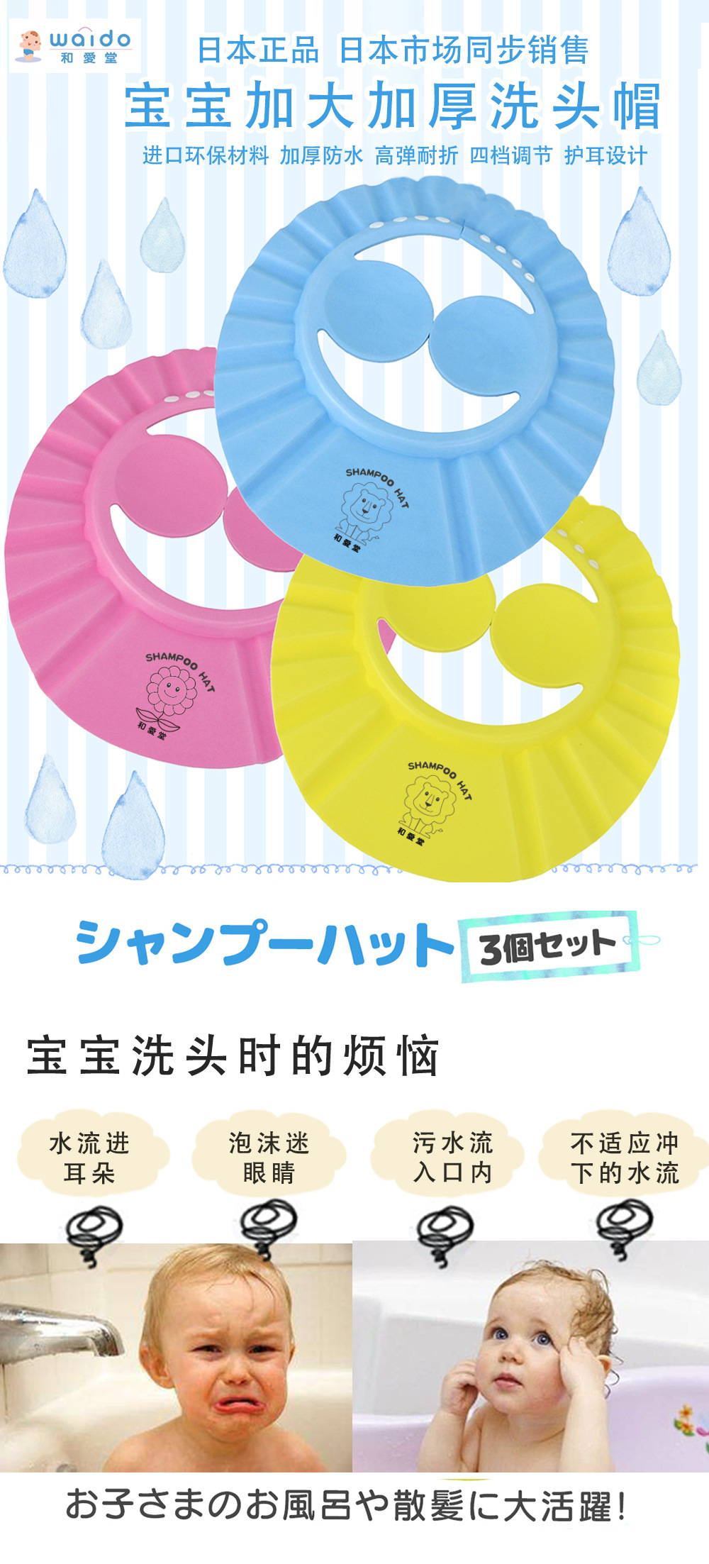 어린이 샴푸 모자 목욕 방수 모자 어린이 아기 조정 가능한 샴푸 캡 방수 이어 보호 샤워 캡