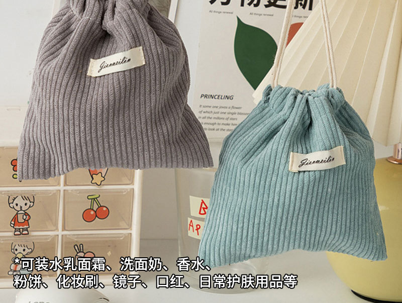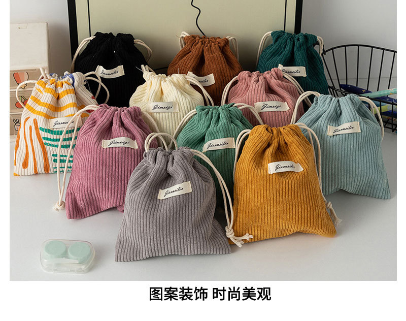 대용량 솔리드 컬러 코듀로이 스토리지 백 드로스트링 코르셋 화장품 가방 여성의 휴대용 휴대용 빨간 가방 동전 지갑