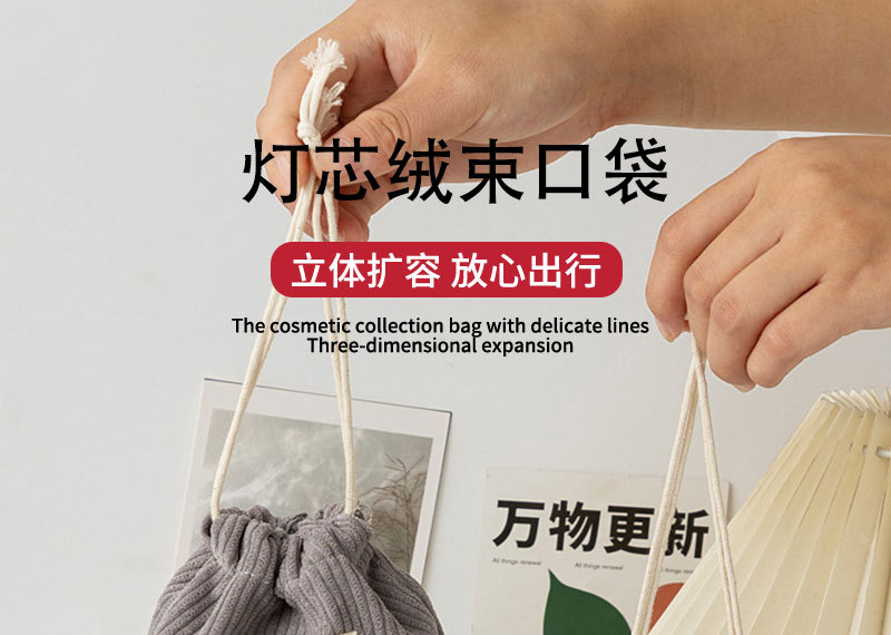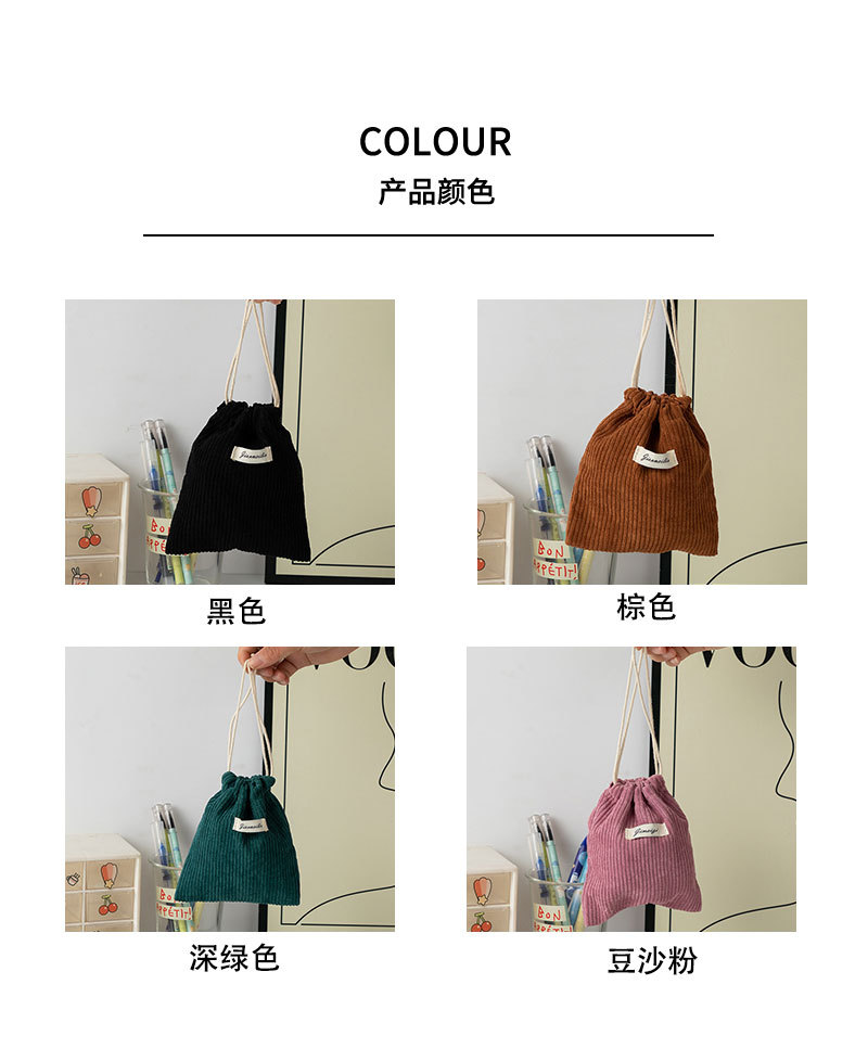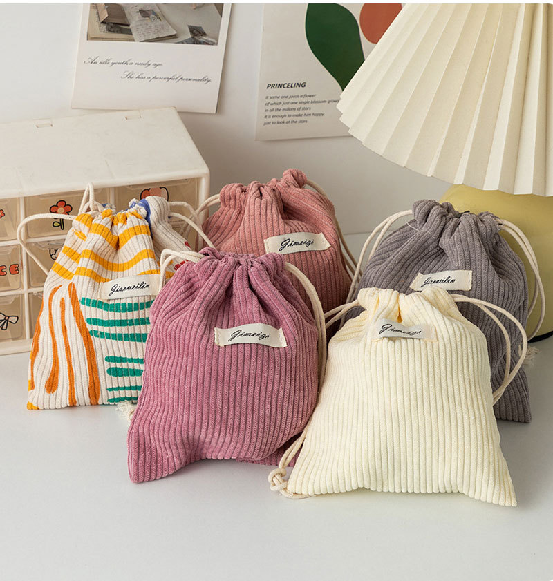 대용량 솔리드 컬러 코듀로이 스토리지 백 드로스트링 코르셋 화장품 가방 여성의 휴대용 휴대용 빨간 가방 동전 지갑스토어 가기