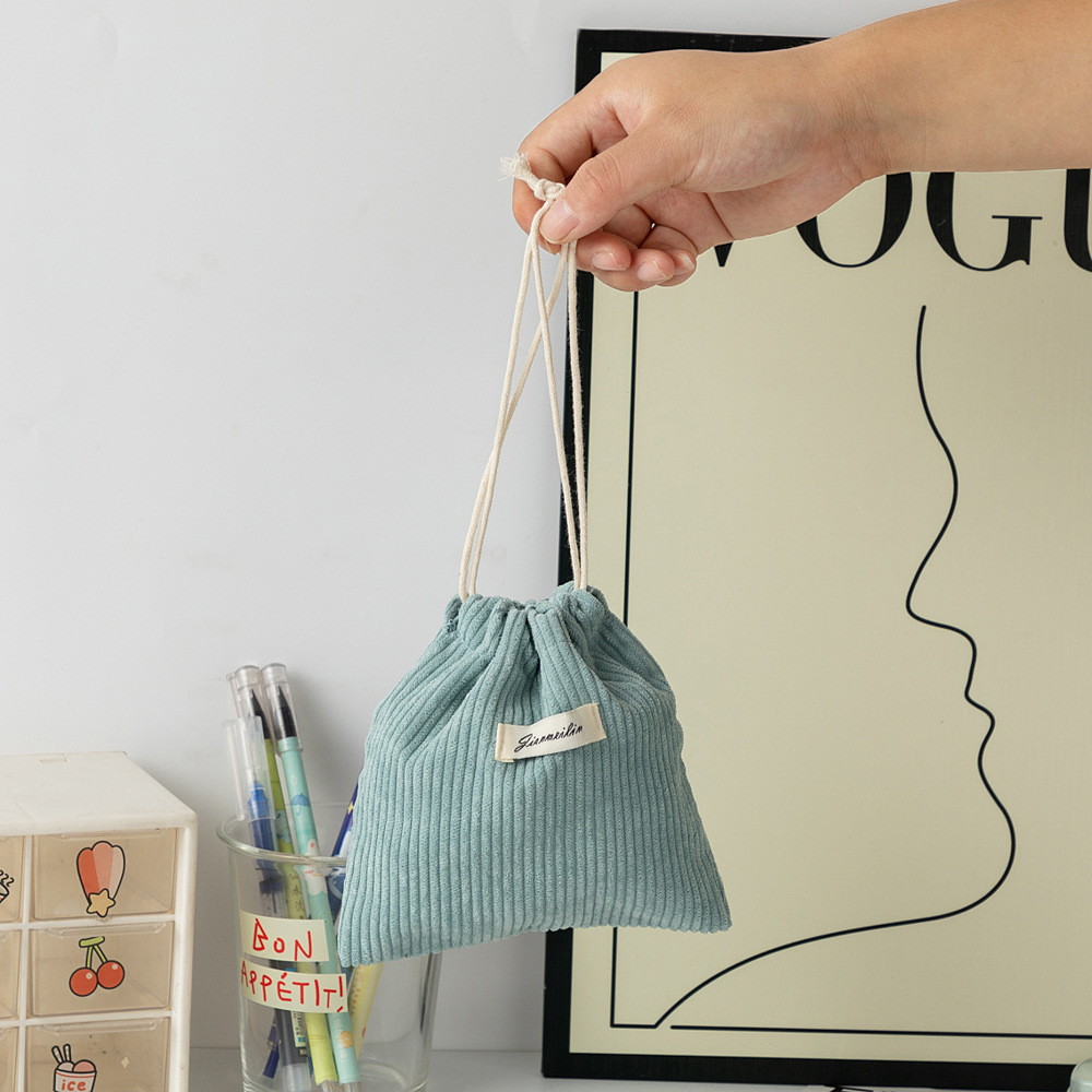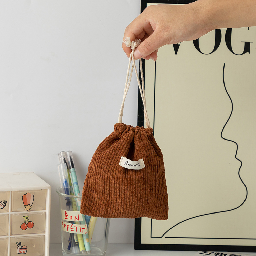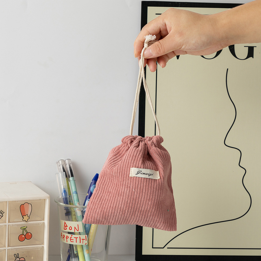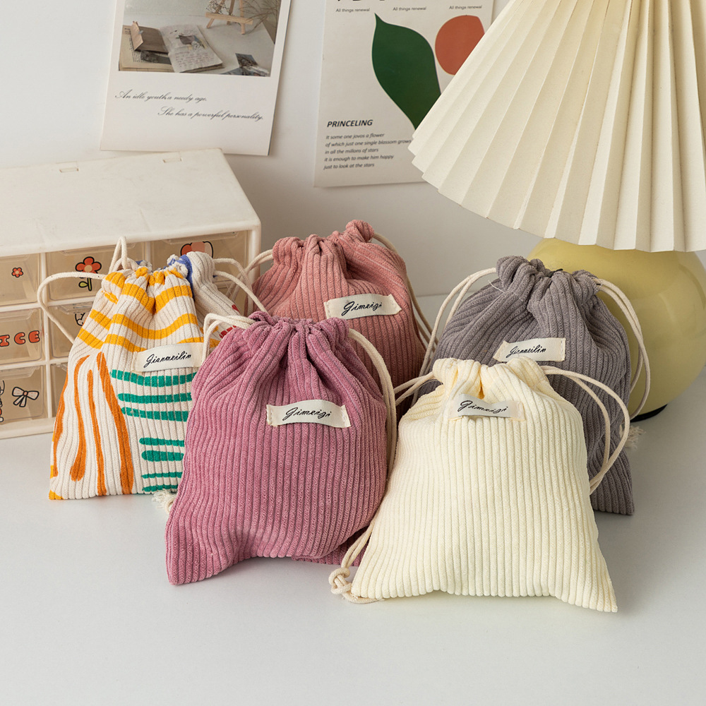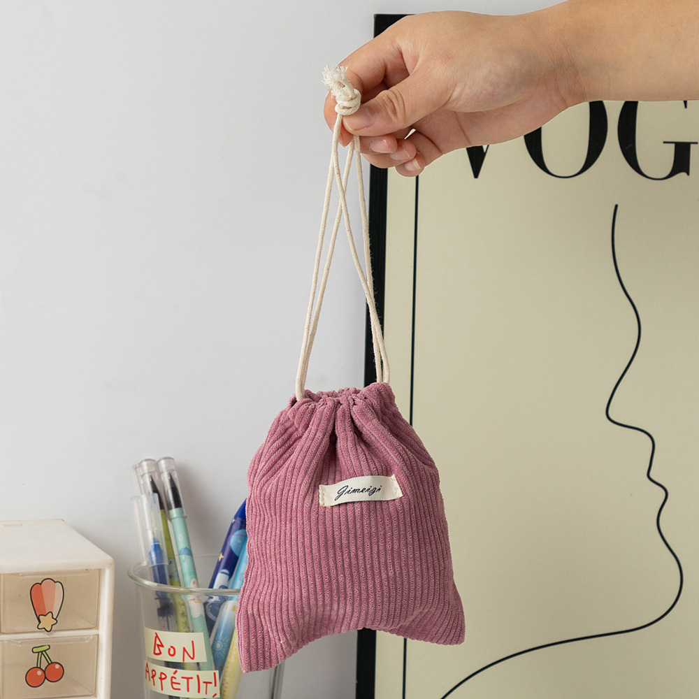 대용량 솔리드 컬러 코듀로이 스토리지 백 드로스트링 코르셋 화장품 가방 여성의 휴대용 휴대용 빨간 가방 동전 지갑
