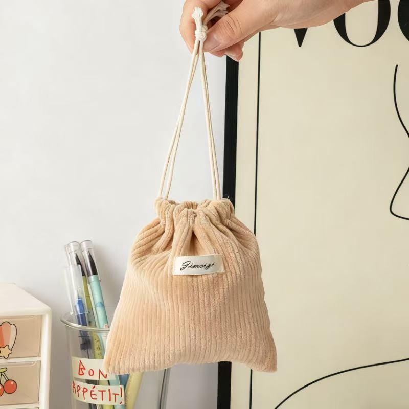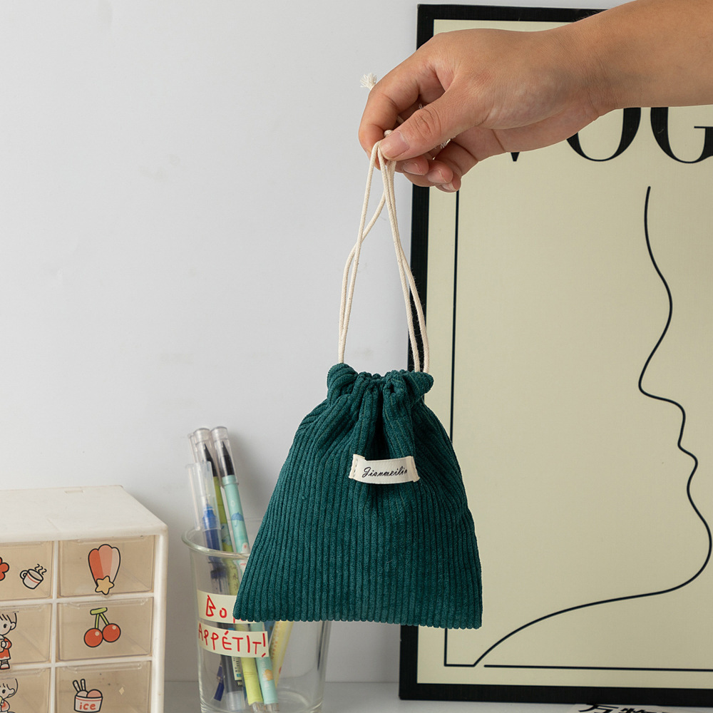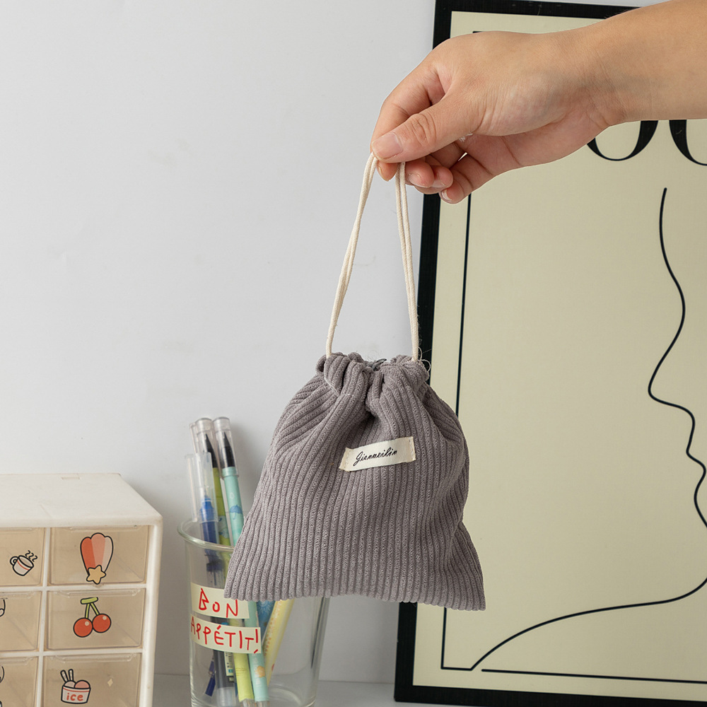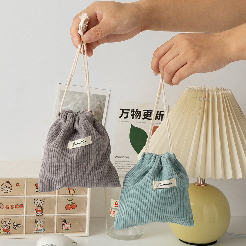 대용량 솔리드 컬러 코듀로이 스토리지 백 드로스트링 코르셋 화장품 가방 여성의 휴대용 휴대용 빨간 가방 동전 지갑