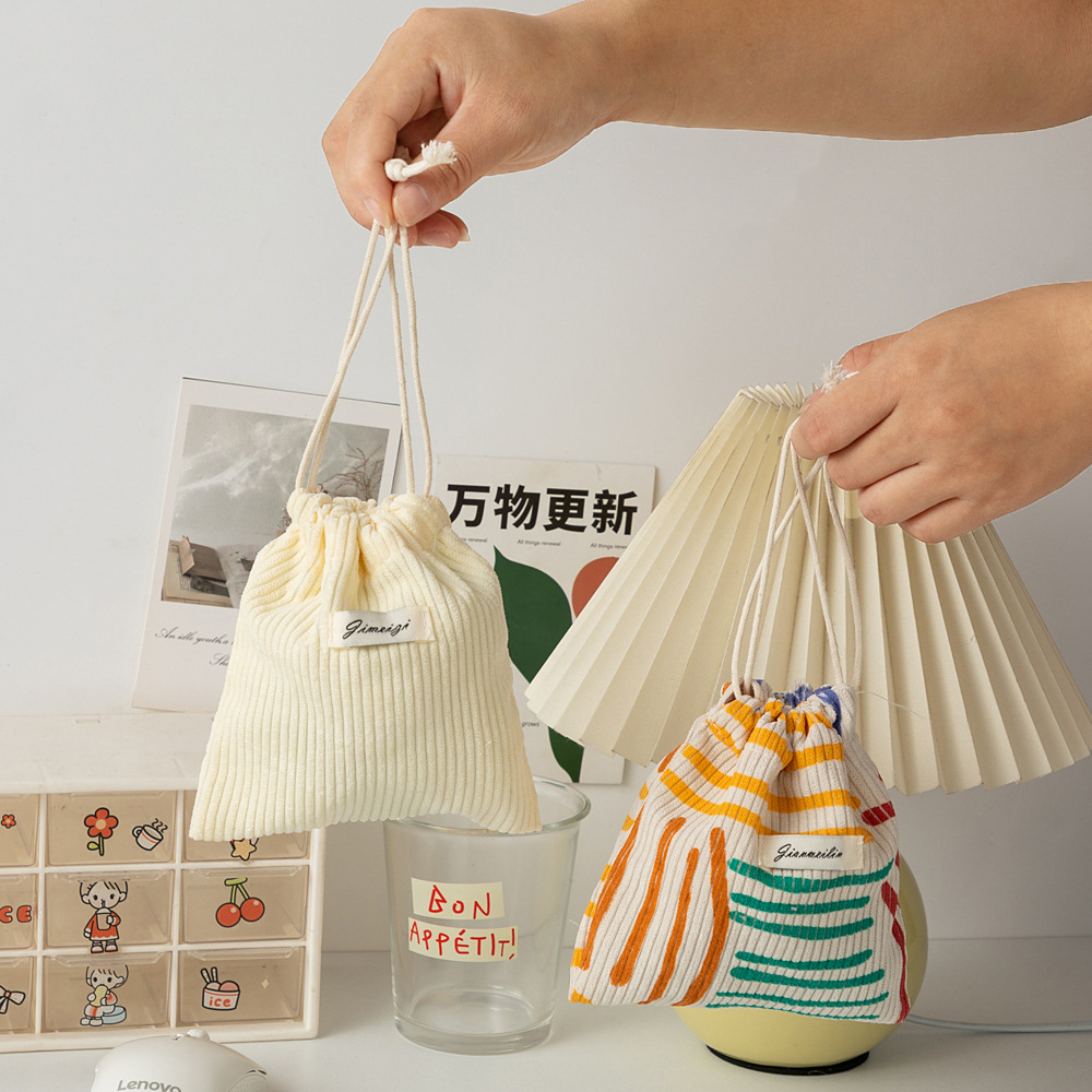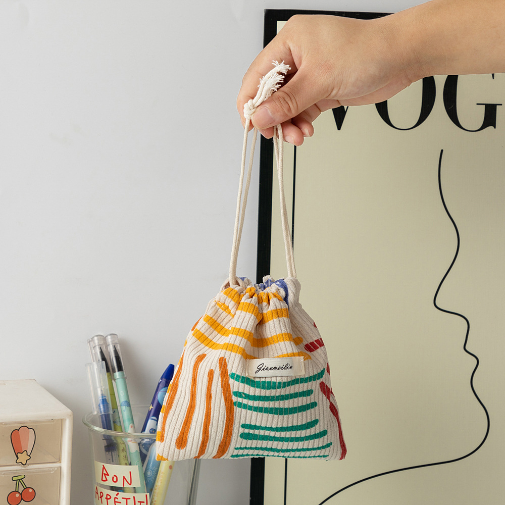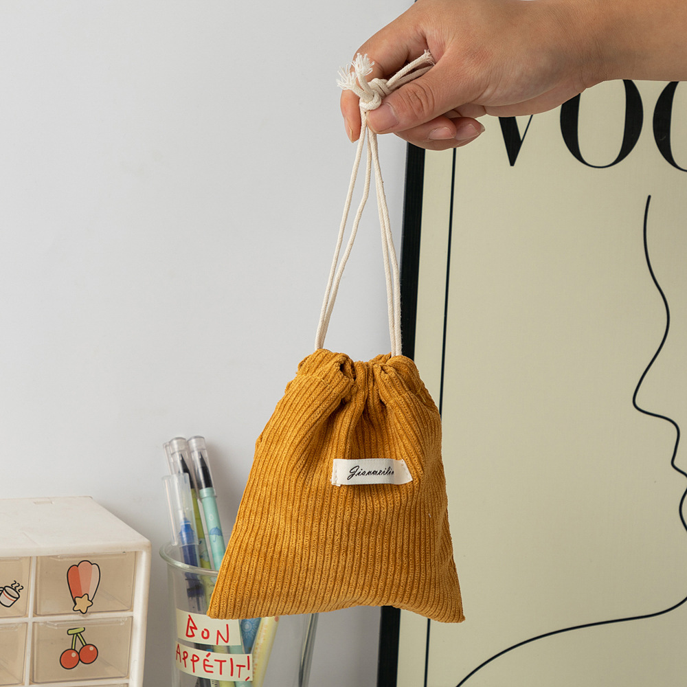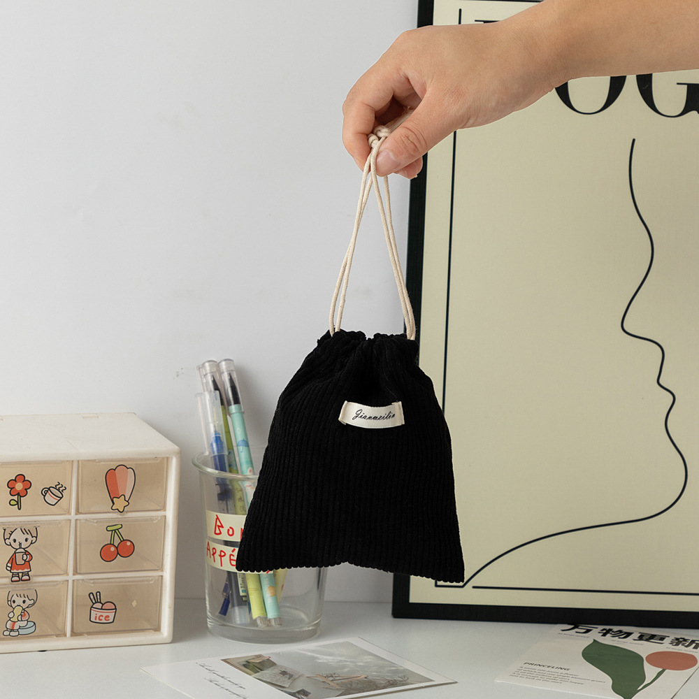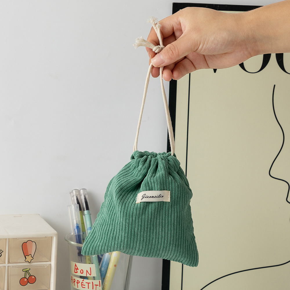 대용량 솔리드 컬러 코듀로이 스토리지 백 드로스트링 코르셋 화장품 가방 여성의 휴대용 휴대용 빨간 가방 동전 지갑