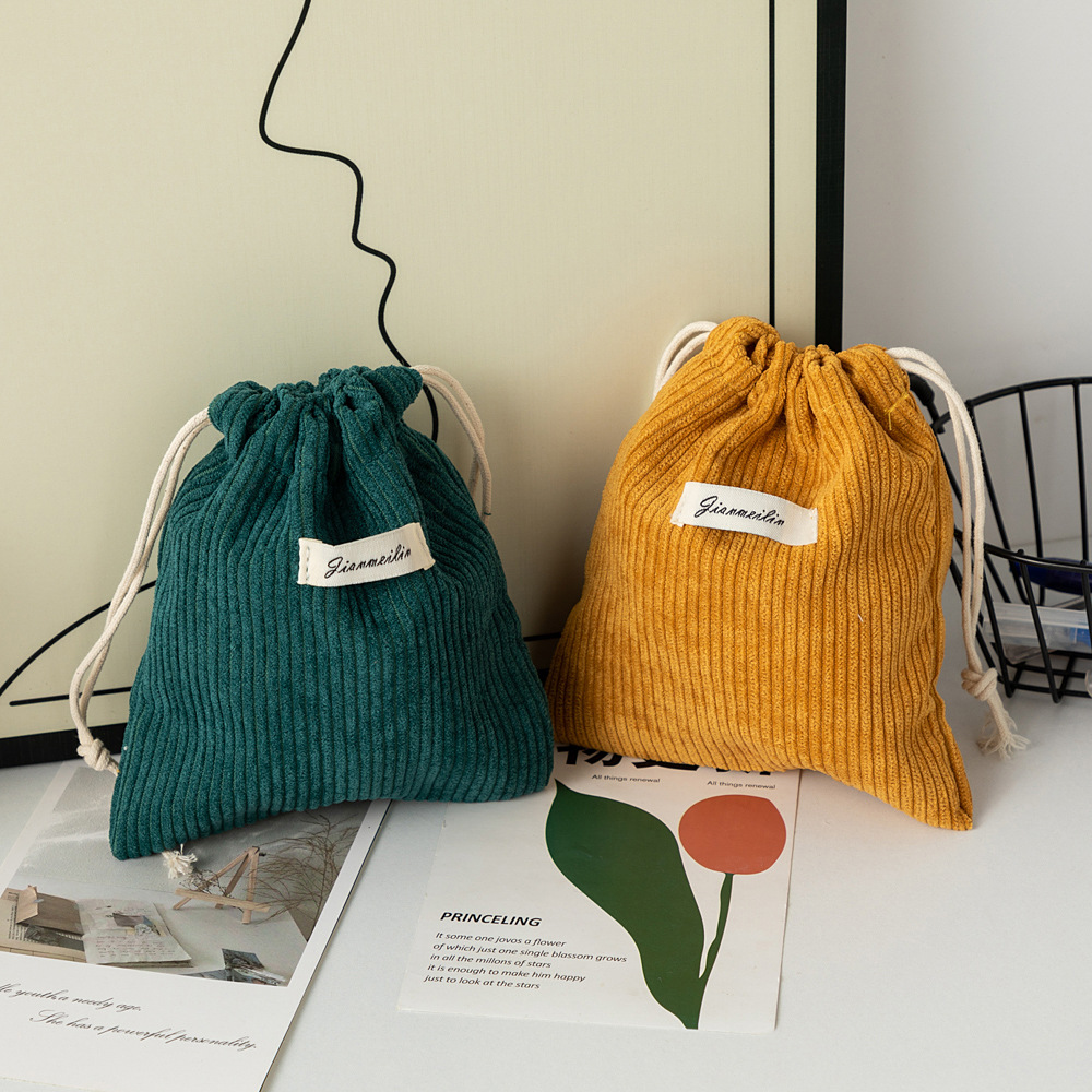 대용량 솔리드 컬러 코듀로이 스토리지 백 드로스트링 코르셋 화장품 가방 여성의 휴대용 휴대용 빨간 가방 동전 지갑스토어 가기
