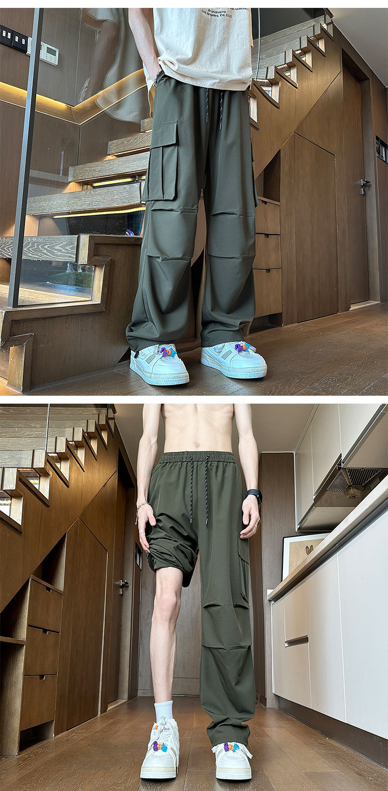얇은 아이스 실크 캐주얼 바지 남자의 여름 느슨한 유행 작업복 캐주얼 바지 남자의 솔리드 컬러 스트레이트 빠른 건조 바지스토어 가기
