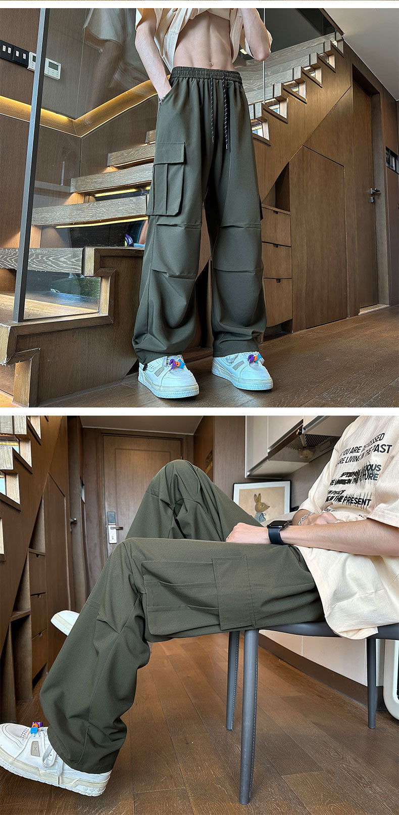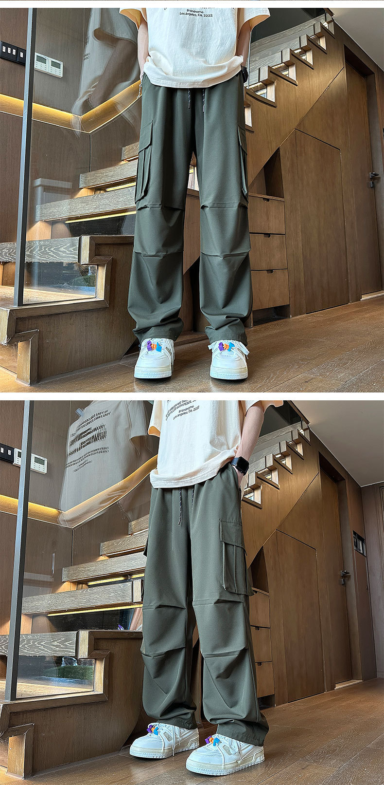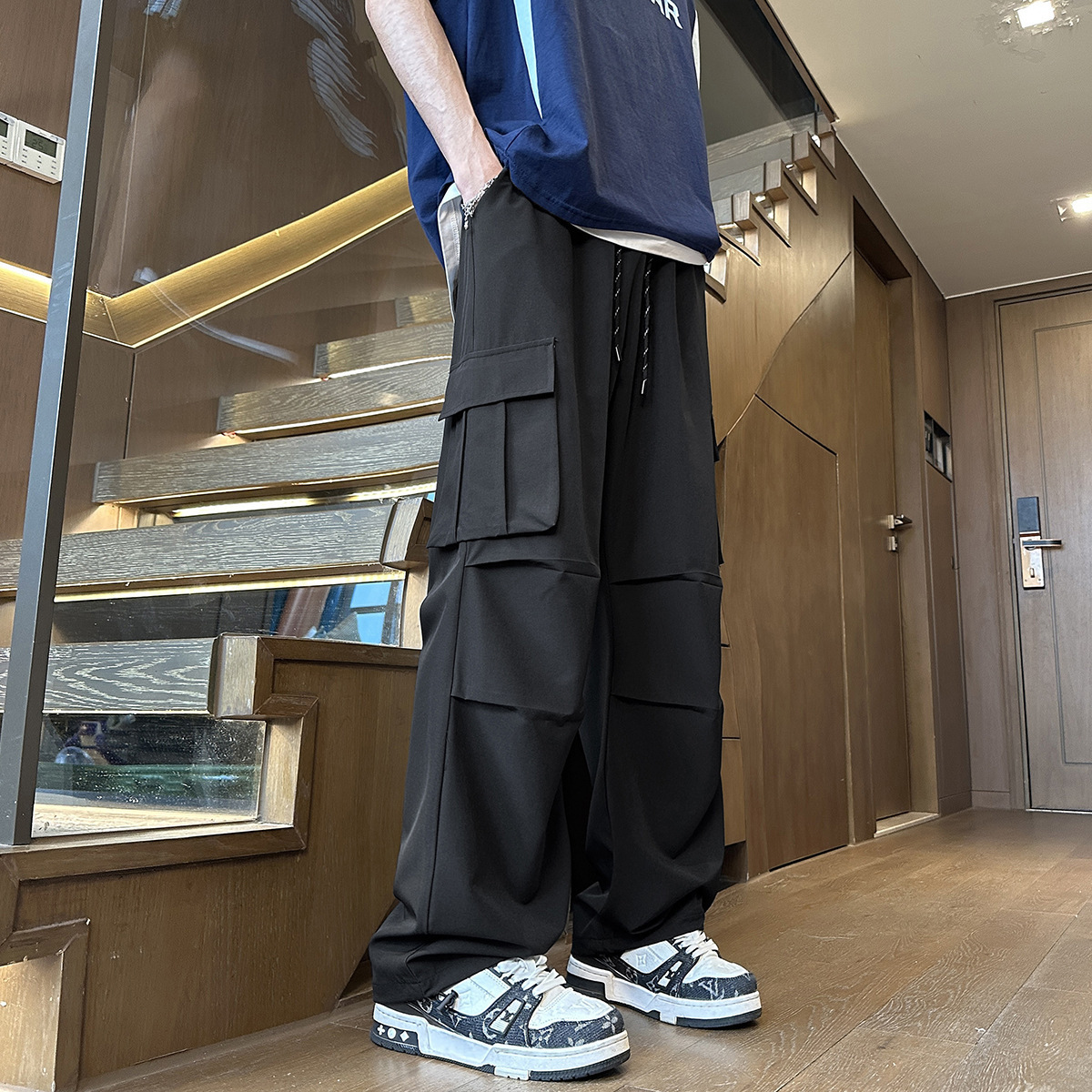 얇은 아이스 실크 캐주얼 바지 남자의 여름 느슨한 유행 작업복 캐주얼 바지 남자의 솔리드 컬러 스트레이트 빠른 건조 바지